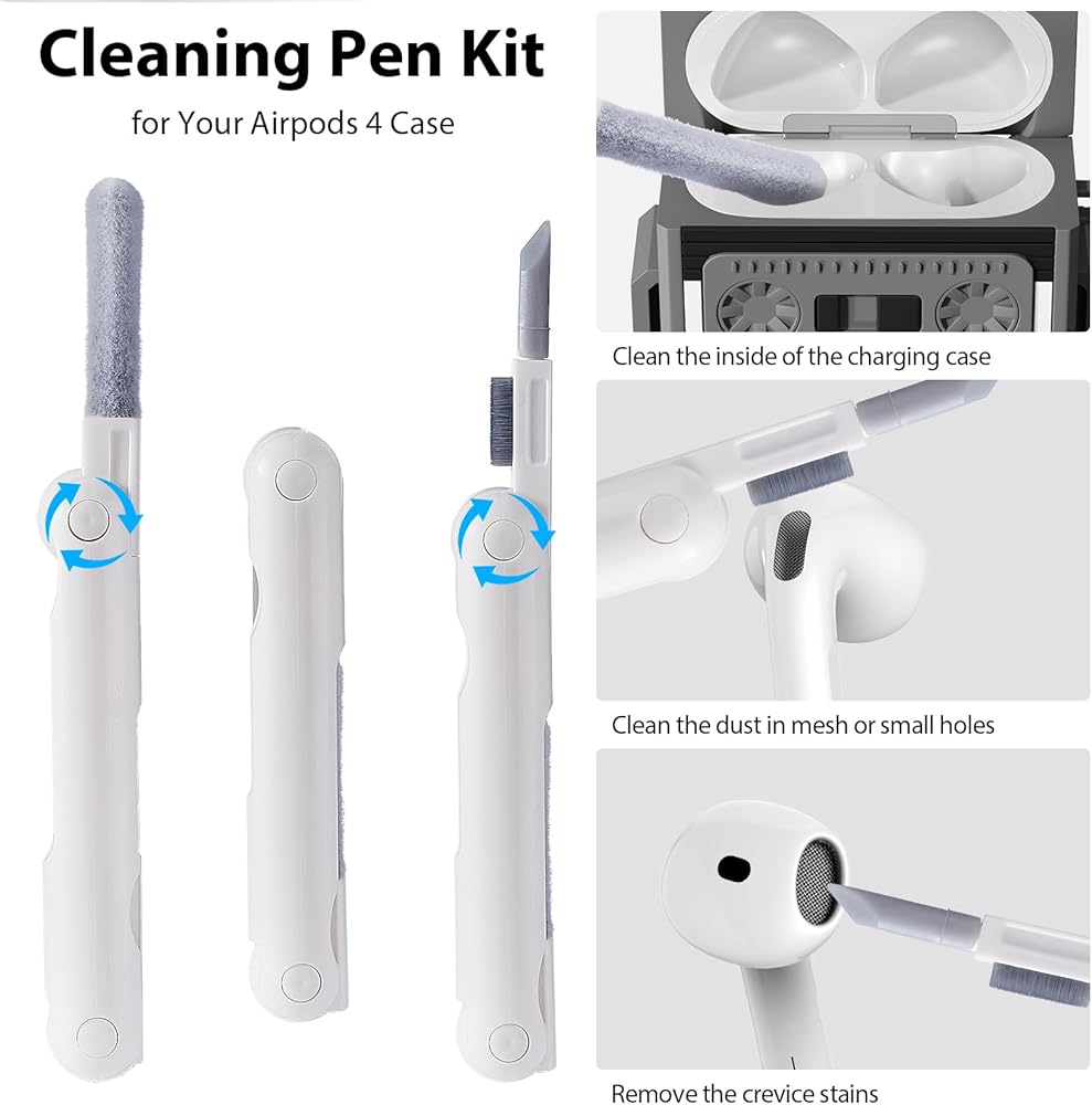 【3-IN-1 Cleaning Pen & Portable Lanyard】: Our case for airpods 4 with cleaner kit and high-density brush, soft flocked sponge and silicone pen tip, can remove the gaps and holes of the earphone, absorbs fine dust inside the wireless earbuds charging case, Always keep clean for your for AirPods 4th Generation Case charging case, This case comes with a portable carabiner key chain, so that you can carry it easily