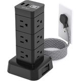 【Space Saving Design】 - With 4-side vertical tower design, this usb power strip takes up little space on your desk, cleans various cords and make your desktop organized. 12 AC outlets with long space in between, it easier to use for all kinds of equipment and without blocking each other.