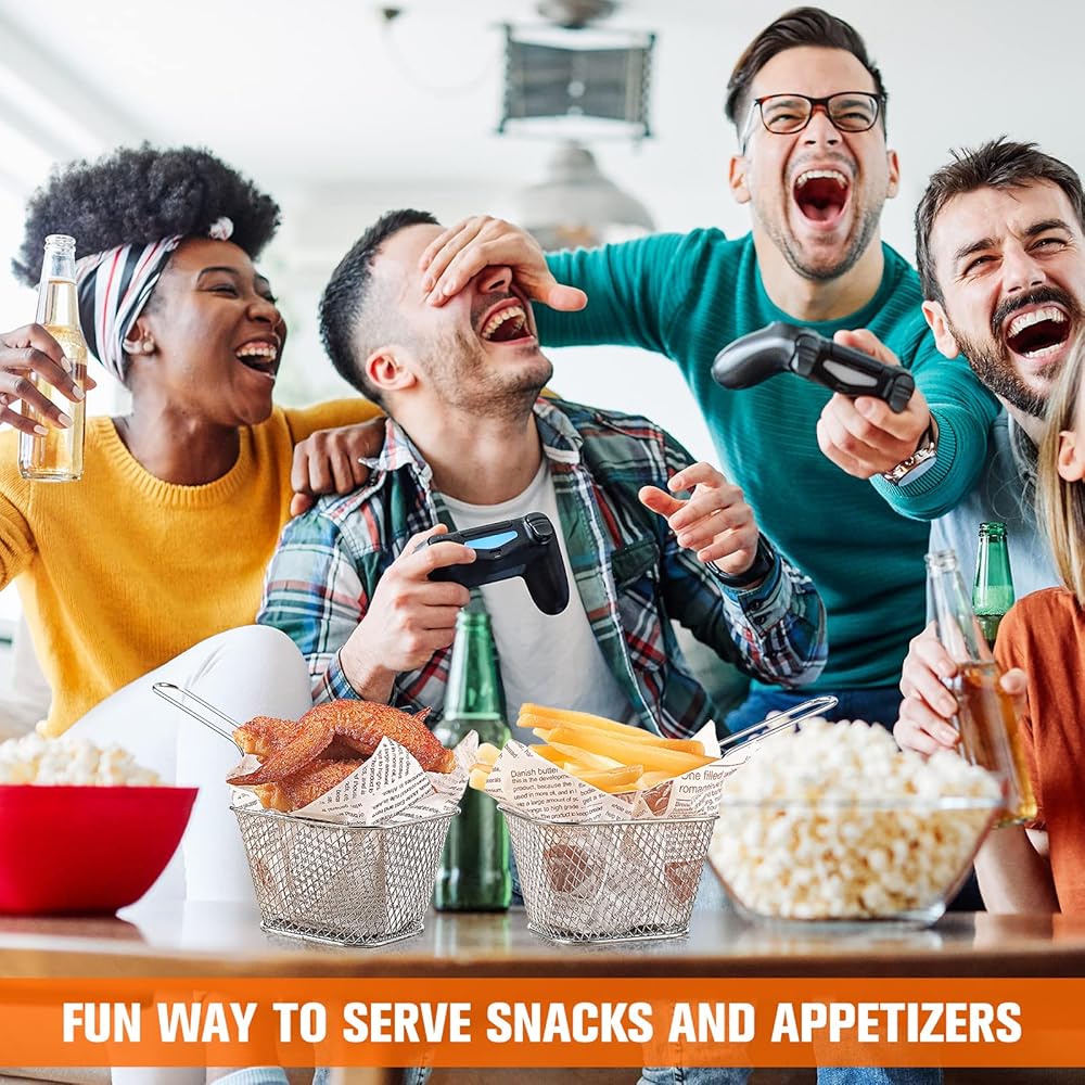 Widely Applied: the french fries basket and deli paper are suitable for various fried food and can be widely applied on your home kitchen, dining room, family gatherings, holiday parties, weddings, kid's birthdays, backyard picnics, outdoor activities, restaurants and more