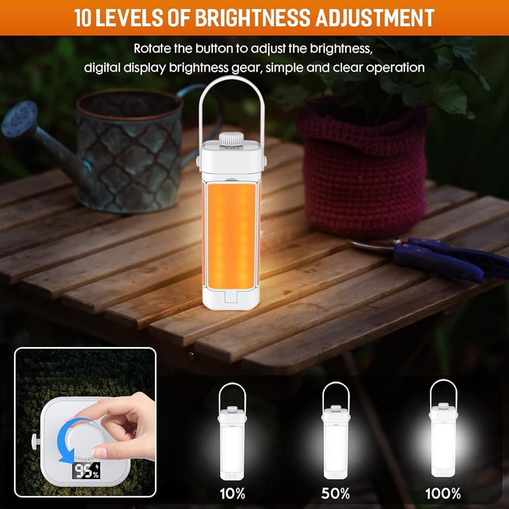 【4 Lighting Modes 10 Levels of Brightness Adjustment】The camping light is specially designed with four lighting modes, including 6500k cool white light, 4000k white light, and 1600k warm white light, with added SOS blinking mode for emergencies. The knob type infinite dimming can be adjusted 10%-100% of 10 levels of brightness adjustment, whether it is reading, cooking or walking at night, it can be easily adjusted to the most suitable brightness.