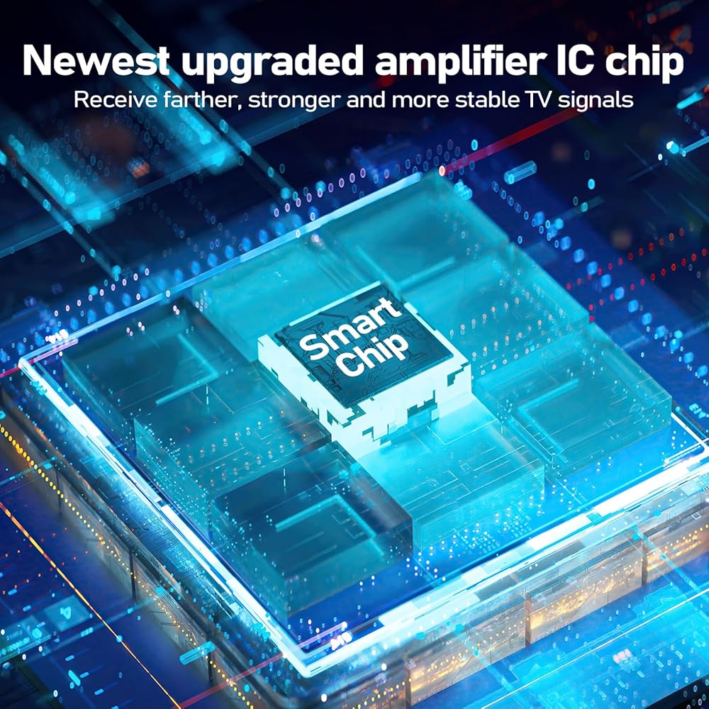 990+ Miles Long Range Reception: Strong and stable signal ! The indoor tv antenna can receive much free channels you want over 990+ long range distances! Our antenna for smart tv with a 2024 upgraded built-in IC chip for access to more free local channels. This is the best tv antenna with technology, bringing clear pictures, low noise, and access to most TV signals with high gain.