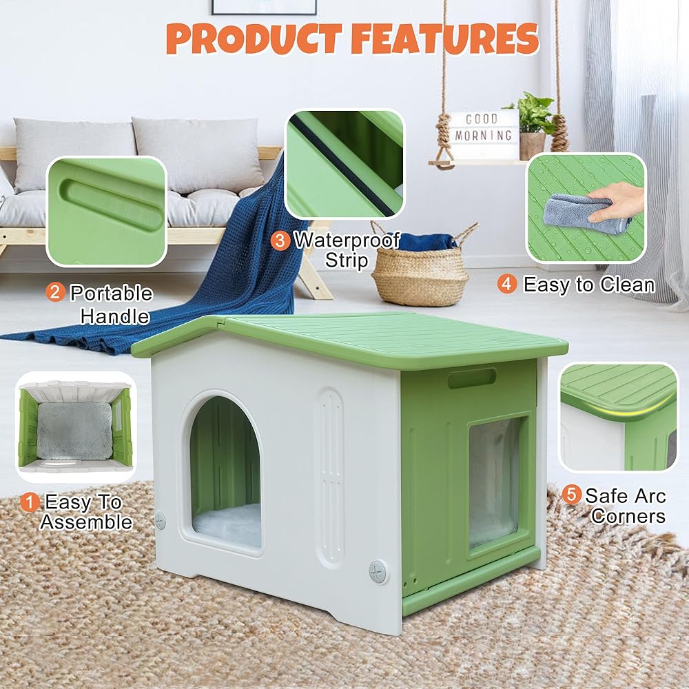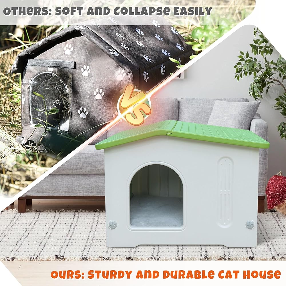 ♕Easy to Clean & Detachable: High-end HDPE material, strong and lightweight, the buckle design allows for easy removal, and additional tools can easily disassemble the cat house, which is convenient for daily maintenance and cleaning of the interior