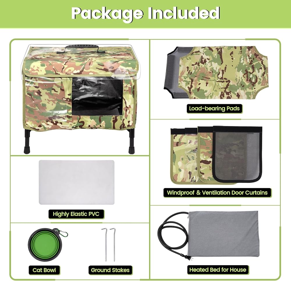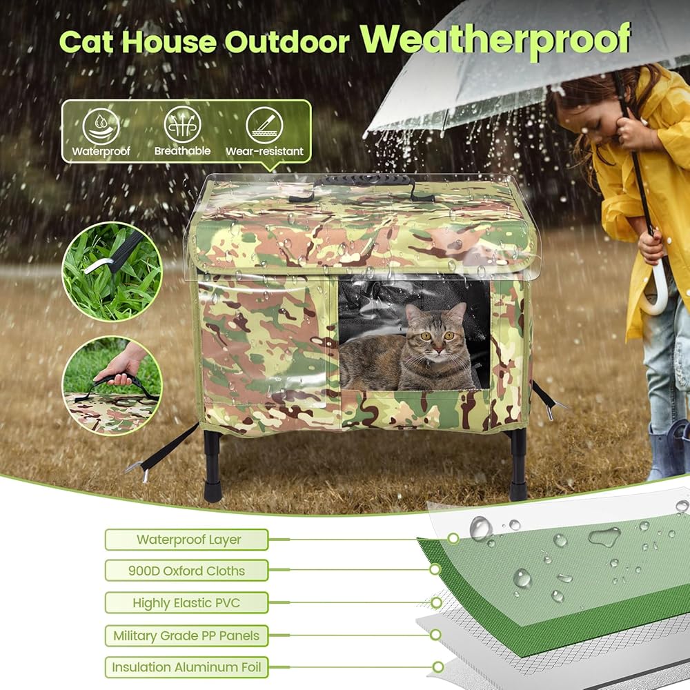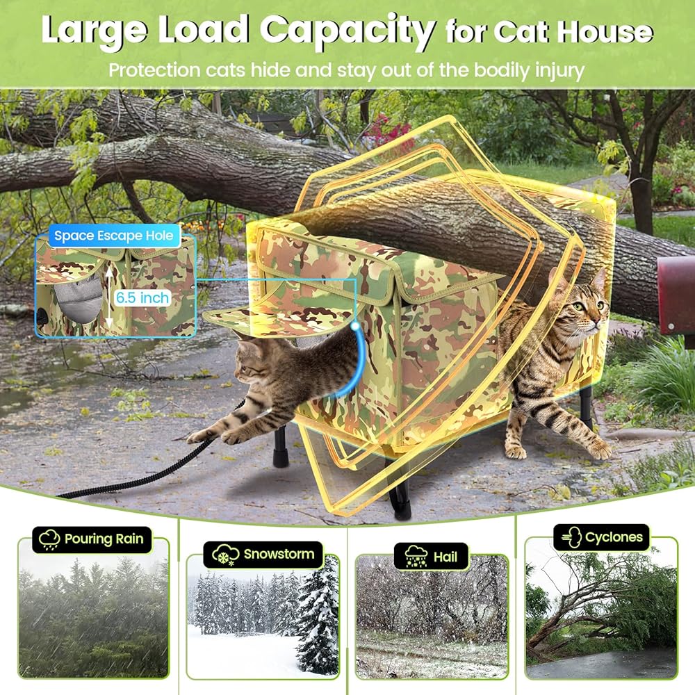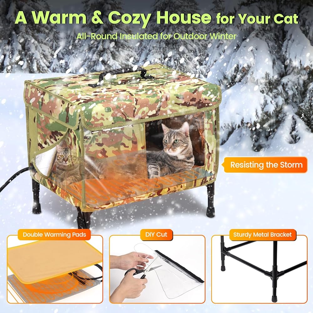 【𝐇𝐢𝐠𝐡 𝐇𝐞𝐚𝐭𝐢𝐧𝐠 𝐏𝐚𝐝 𝐁𝐞𝐝 𝐟𝐨𝐫 𝐂𝐚𝐭】 Equipped with UL-tested heating wire and fully waterproof construction, the included outdoor heated cat bed meets high safety standards, providing safe and reliable warmth for outdoor furry friends