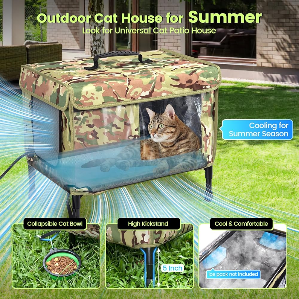 Outdoor Cat House Summer - Weatherproof Large Stray Cat Shelter for Outside Cooling Feral Pet Shelters All-Weather Cathouse 25"x18"x16"- Insulated Elevated House for Barn Cats Ideal Feral Cat House