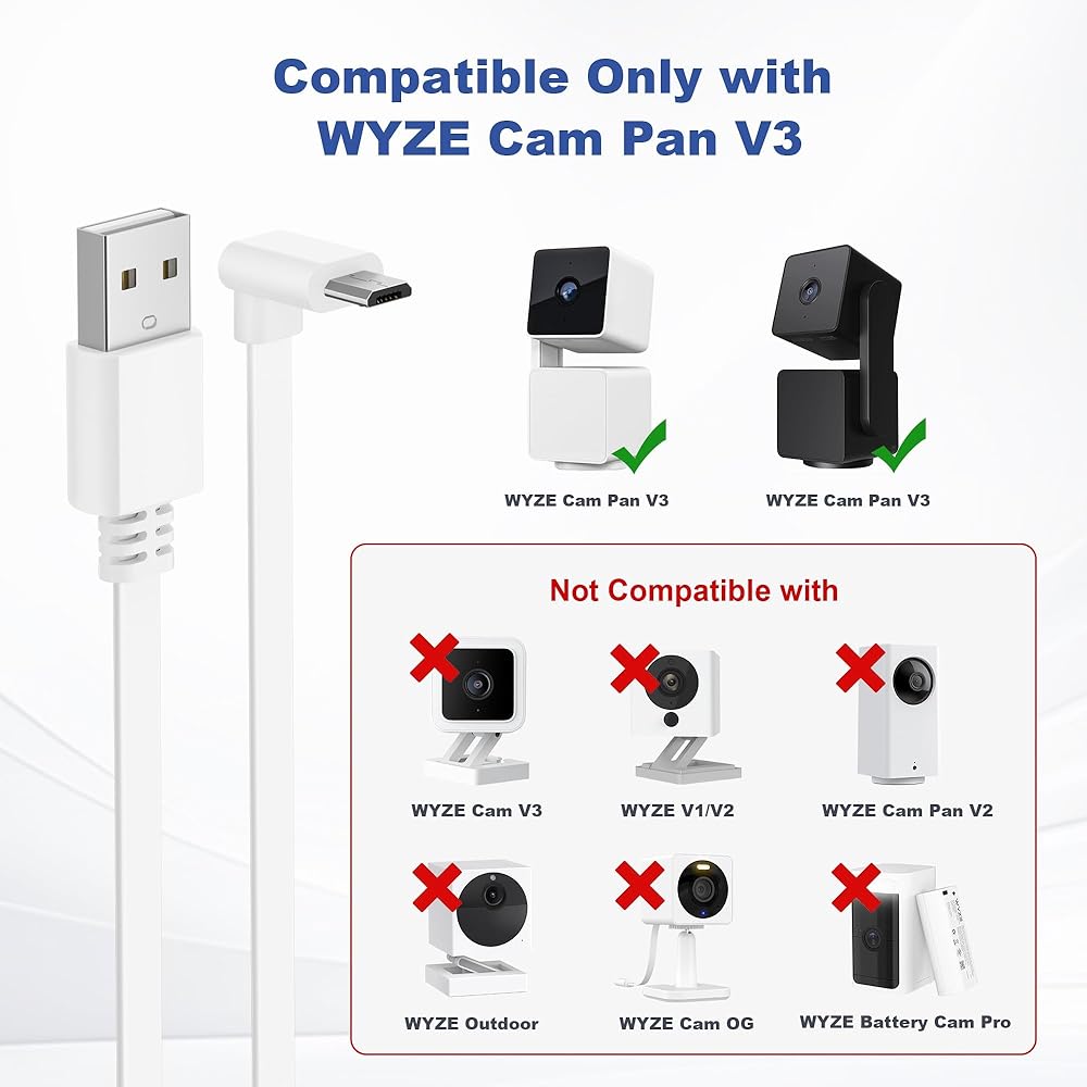 Perfect Fit for WYZE Cam Pan V3: With a 90-degree L-shaped connector, this extension cable is tailor-made to fit your WYZE Cam Pan V3 perfectly, ensuring a secure and stable connection for optimal performance.