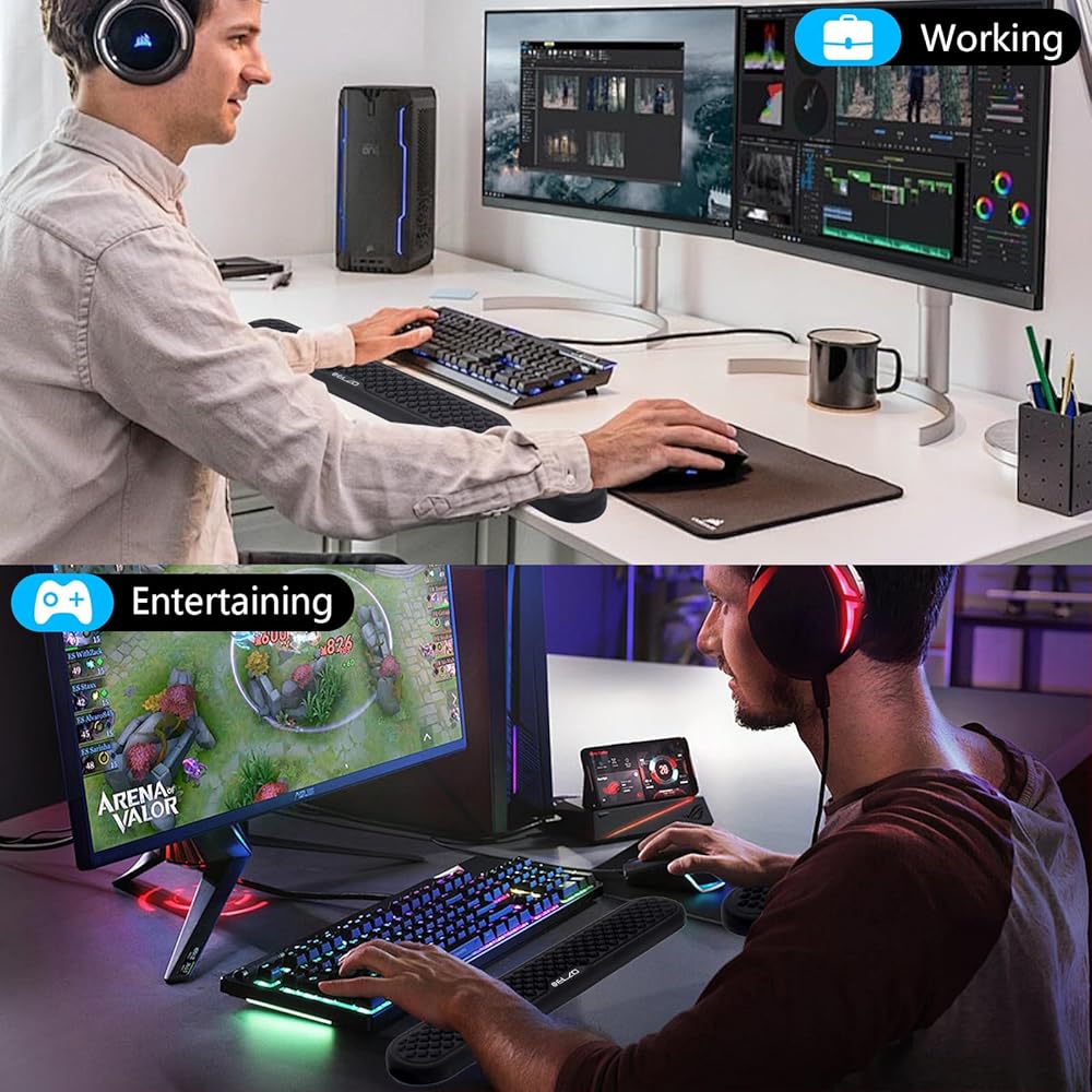 【Non-Slip Rubber Bottom】The non-slip rubber base provides strong grip and prevents the keyboard from slipping or unnecessary movement on the table, ensuring stable and consistent wrist support during extended computer sessions. It is compatible with various metal, wood, glass or plastic table tops.