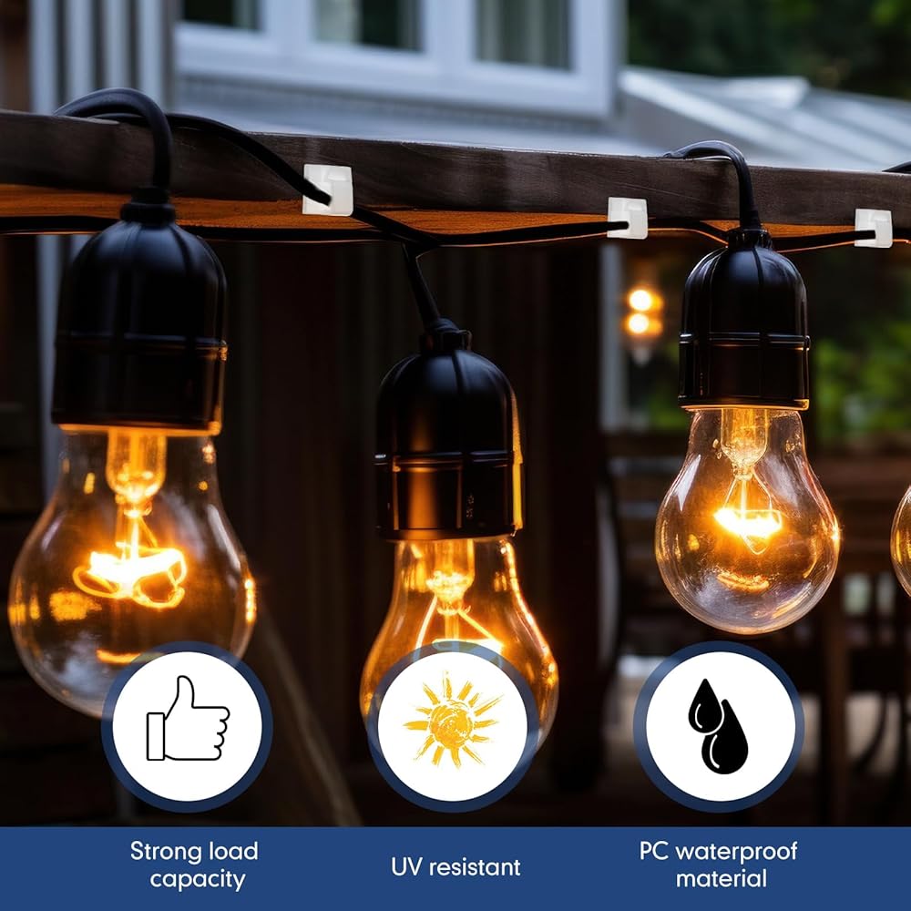 • Adhesive Strength and Ease of Removal: our outdoor string light clips come with maximum adhesive force, ensuring sturdy cable management; After installing these clips, allow 24 hours to attain the maximum adhesive strength; Moreover, they can be removed effortlessly using a simple tool like a spatula without leaving any residue behind