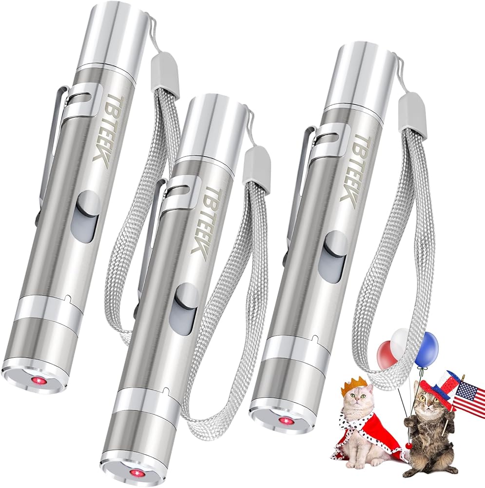 Multiple Function: Cat toy has three modes: red light, white light, and purple light, suitable for different situations. The red light is great for playing with your cat and convenient for clear PPT presentations.The white light flashlight helps light up dark corners to find your cat, and the purple light is useful for checking money and examining pets