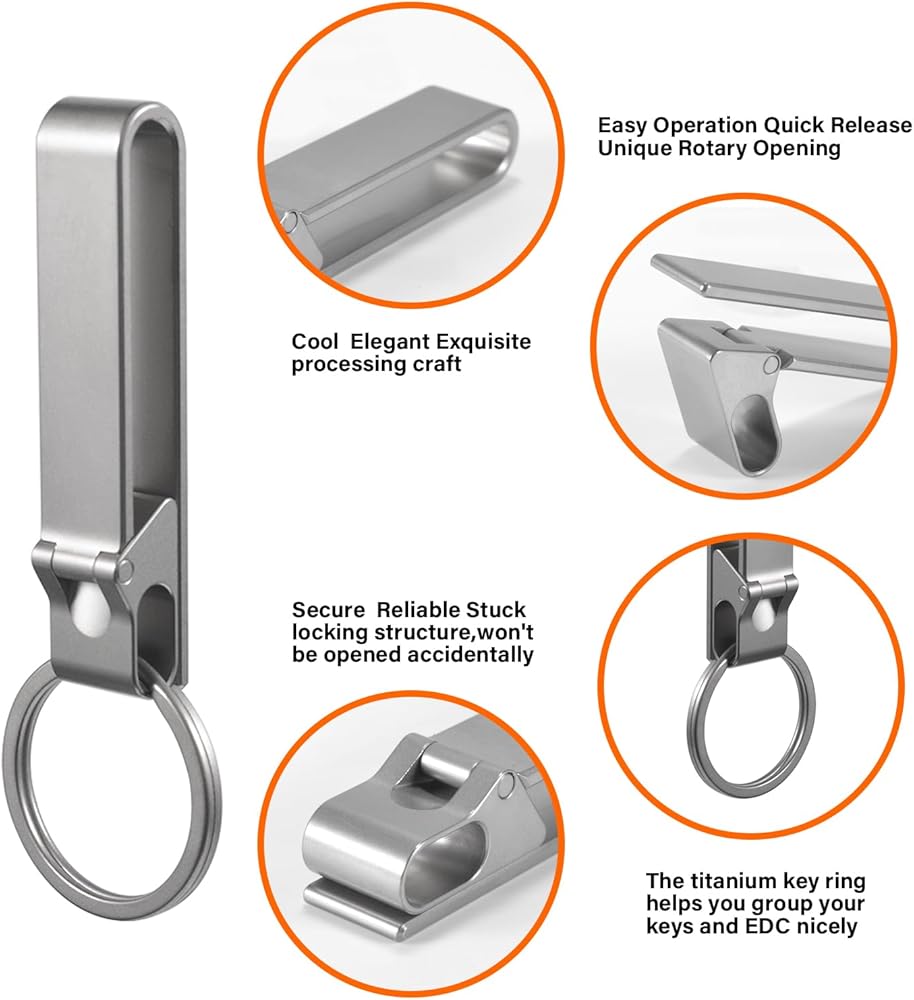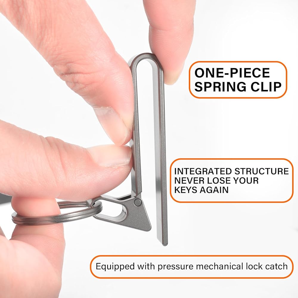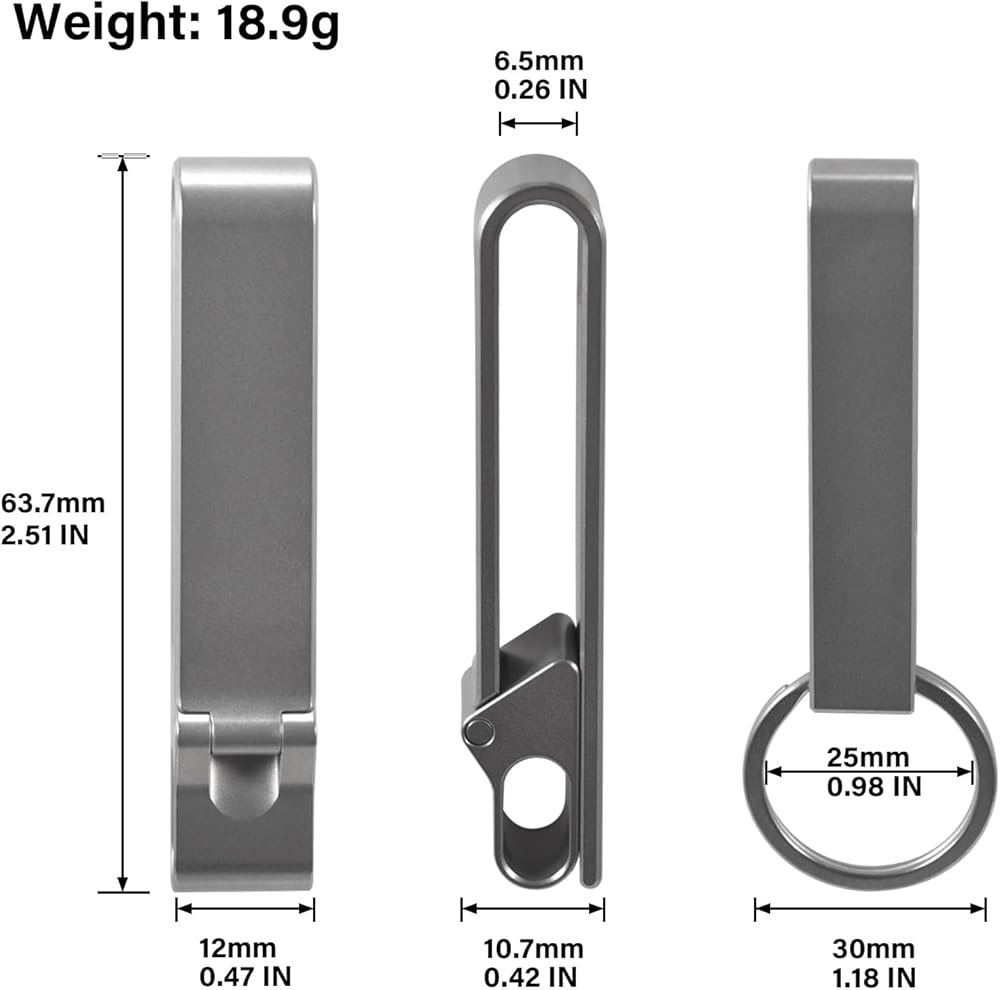 🔑HIGH QUALITY MATERIALS: The keychain clip is made of TC4 titanium alloy, super light, half lighter than stainless steel. Light but strong, resistant to high temperature, wear and tear, corrosion resistance, high strength, rust-proof, no need to worry about salt water corrosion. The key chain clip is made of metal sandblasting process, stylish and durable appearance. And rounded and chamfered corners to make it smooth and safe.