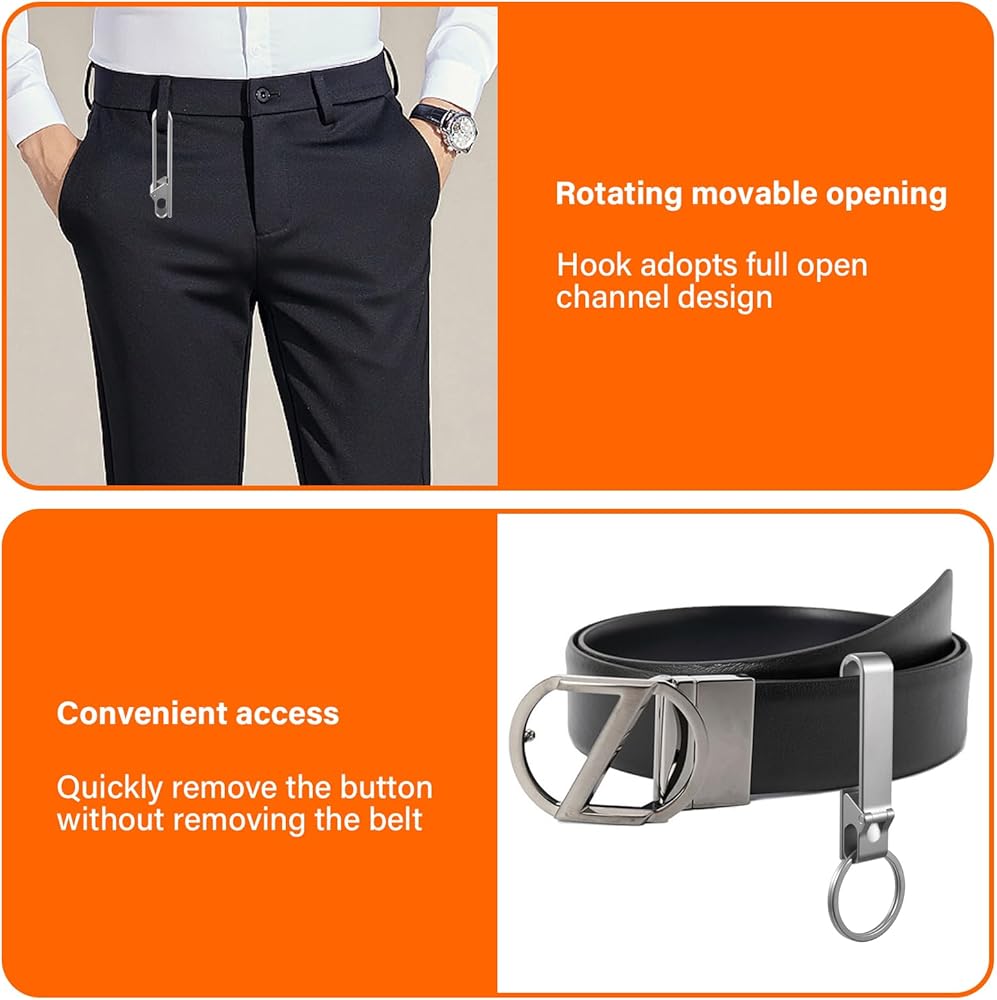 🔑EASY TO USE :This car keychain clip is made of metallic gray color, well-finished and exquisite in appearance. Understated but cool and elegant enough. Couple keychains are also a good idea to give to your loved ones. The unique swivel opening is easy to handle. No harm to the belt. Very secure when locked, not easy to loosen and deform. Simply attach it to your pants loop or belt loop so it won't fall off and saves pocket space. No need to worry about losing your keys.