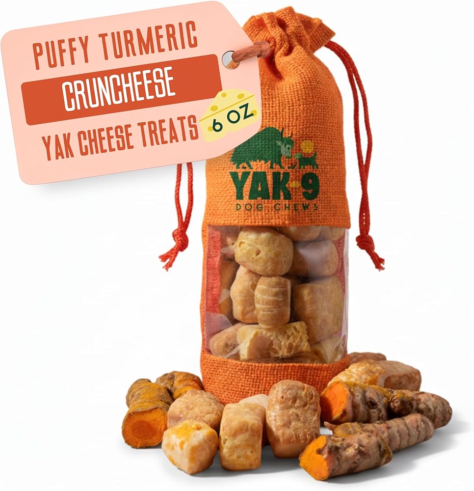 Yak9 Cruncheese Dog Treats, Crunchy High Protein, Low Fat Dog Treats with Yak Cheese, Natural Ingredients, Rawhide Free, Dog Treats For All Breeds, Dog Training Treats, Non GMO, Turmeric, 6 Oz, 30 PCS