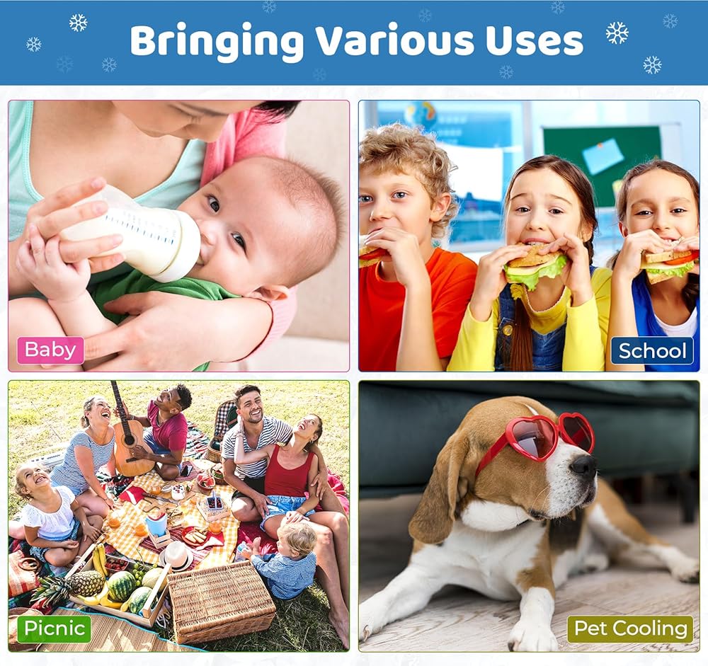 EASY TO USE & REUSABLE :Simply place the small cooler bags in the freezer overnight and then transfer them to your bag in the morning. They are also easy to clean with water,however, please note that the cap cannot be opened during use or cleaning.