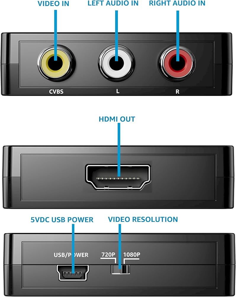 RCA to HDMI Converter: Converts analog RCA composite (Yellow, White, Red) input to HDMI 720P/1080P (60HZ) output, displayed on HDTV/Monitor. IMPORTANT: The Upscaler ONLY converts the input RCA A/V signals to a single HDMI output-not vice versa.