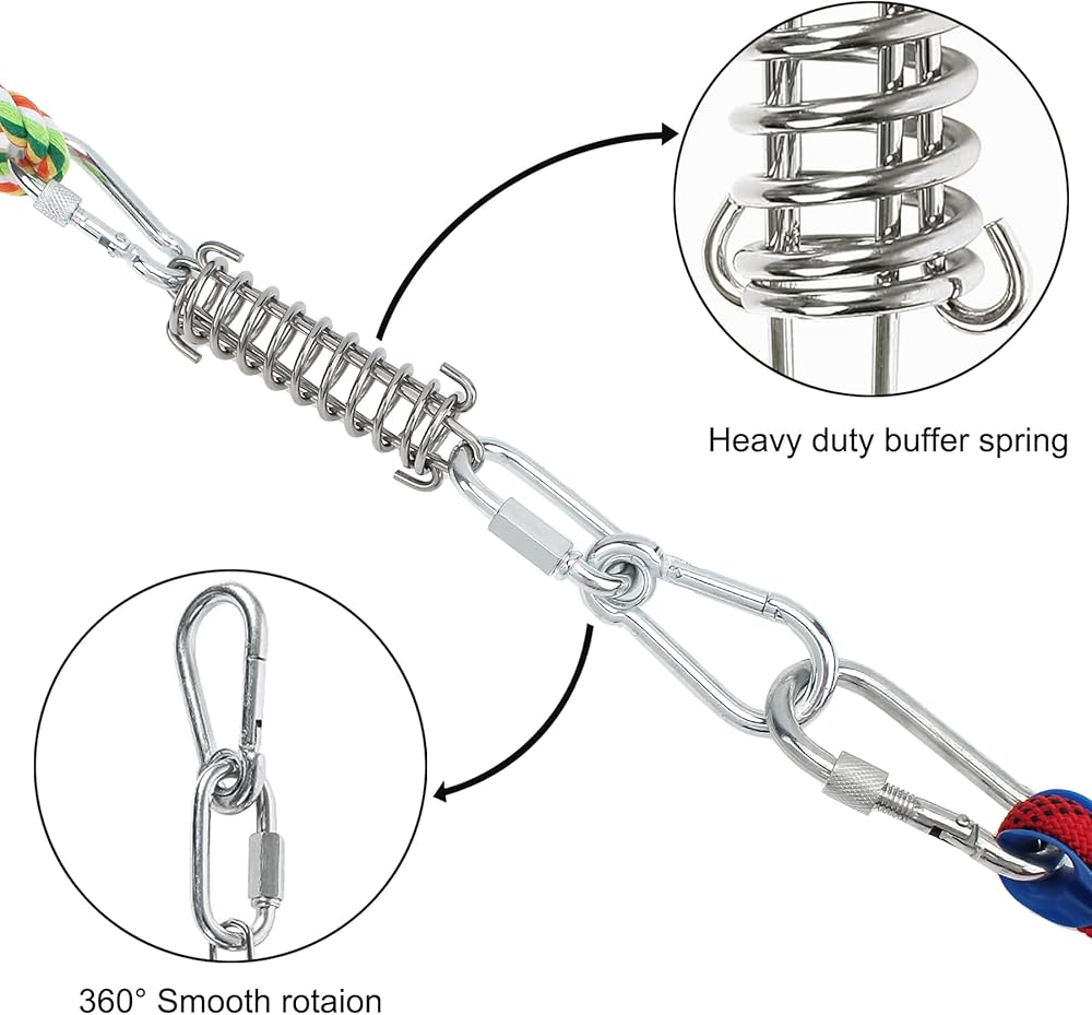 Safety and Durability: We prioritize the safety and durability of our dog tree tug toy. It features a stainless steel spring pole that can withstand long-term outdoor use without rusting. The spring also acts as a cushion, effectively preventing injuries to your dog during intense play. No more trips to the pet hospital due to playtime accidents!