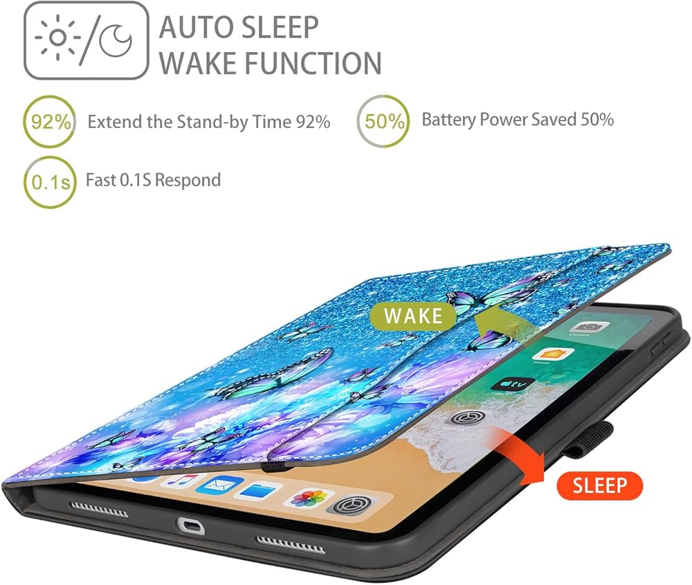 iPad Pro 12.9 Case instantly wakes up tablet when opened, and makes it go to sleep once closed (extend battery life).