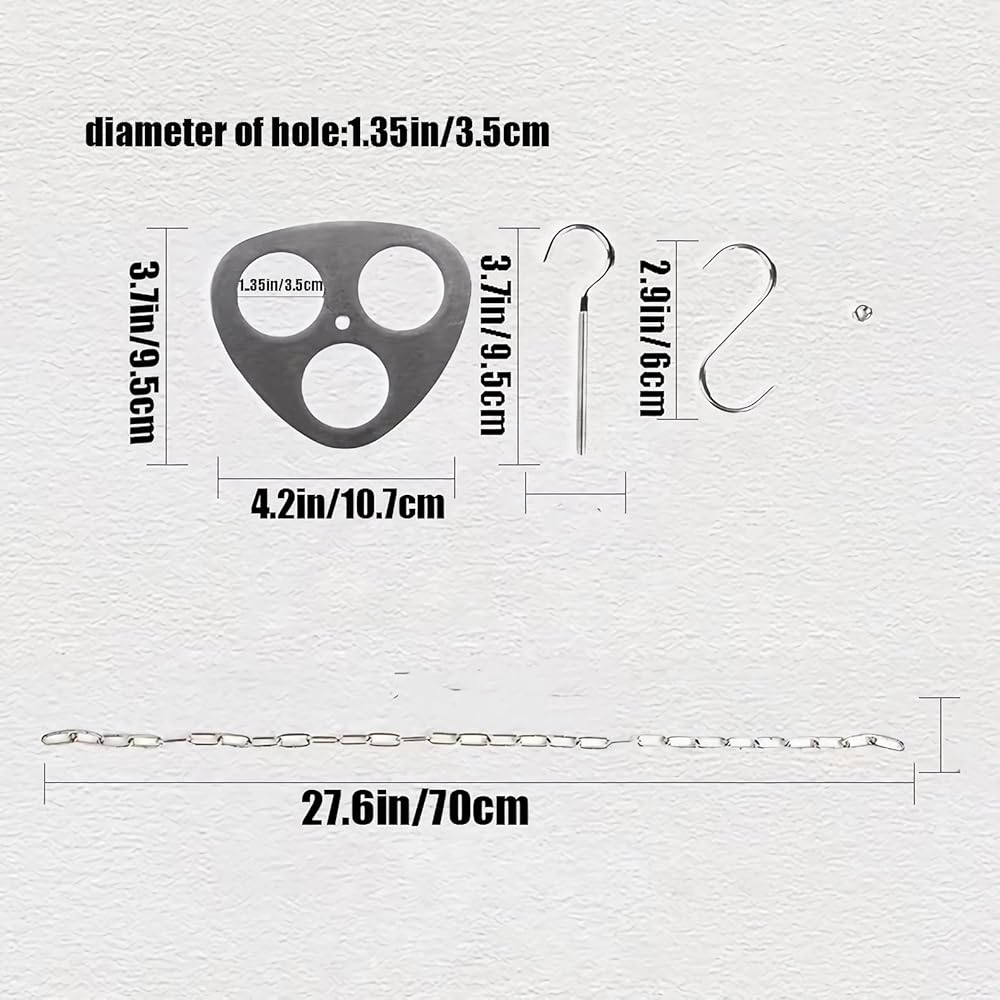 The Camping Tripod Board is made of high quality stainless steel. Includes stainless steel triangular plate, s-hooks and connecting hooks.