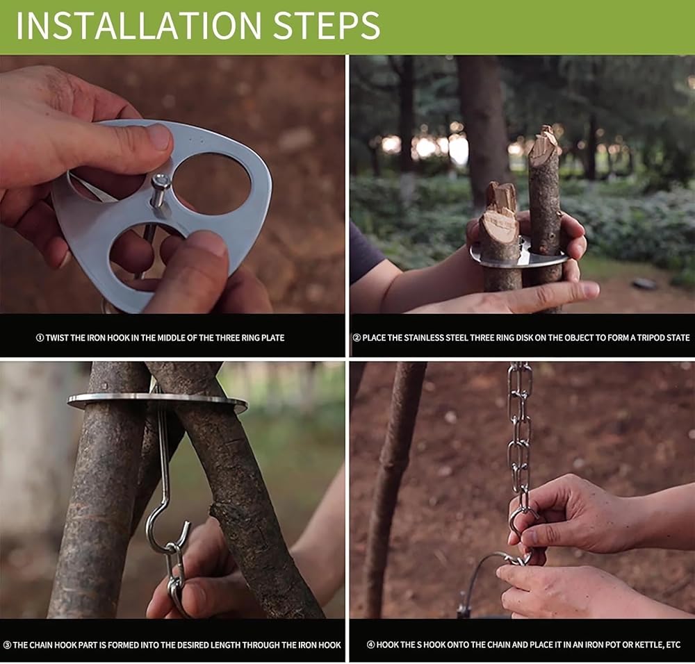 The detachable camp tripod plate is small in size and easy to carry, it is your first choice for camping, picnic and campfire party.