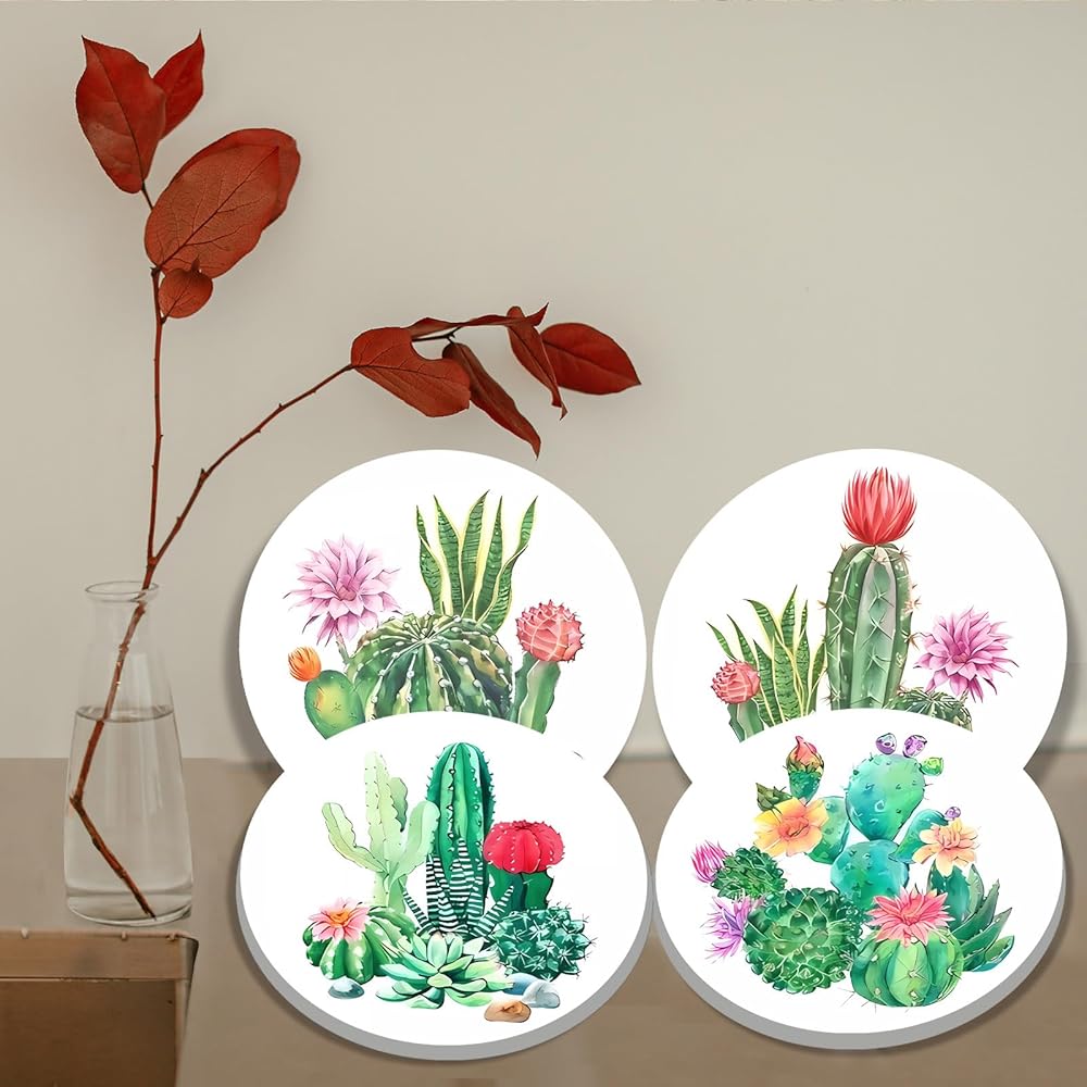 Green Plants Art Electric Stove Burner Covers,4 Pcs Cactus,Succulent Plants,Flower Stove Burner Covers,Tropical Wildflowers Stove Burner Cover,8 Inch and 10 Inch,Metal Cooktop Home Kitchen Decorative