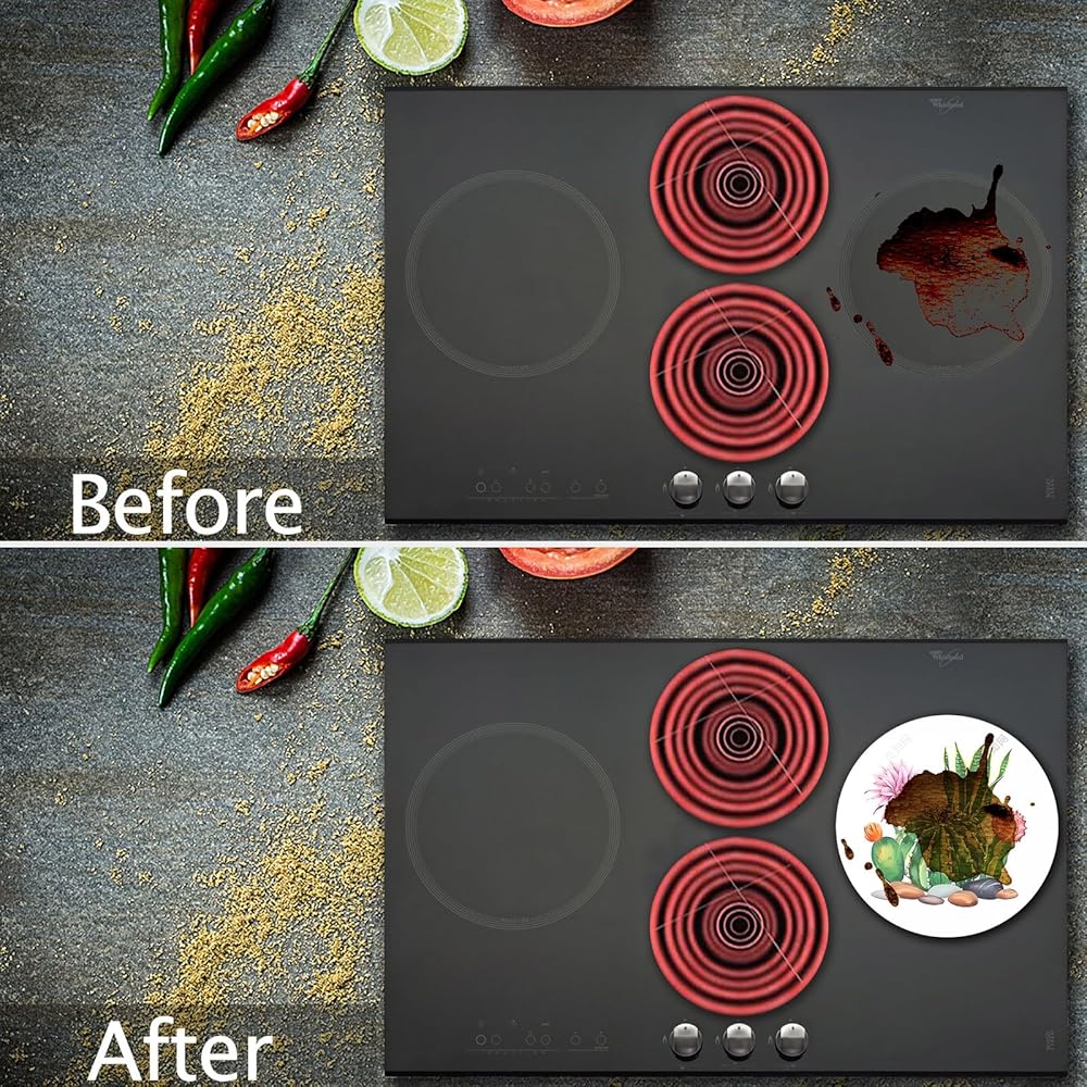 Easily clean the covers with a damp cloth. The covers spare unused burners from being splattered with grease. The perfect choice for your kitchen as they expand your counter space. Decorative use only. Remove prior to using burners.