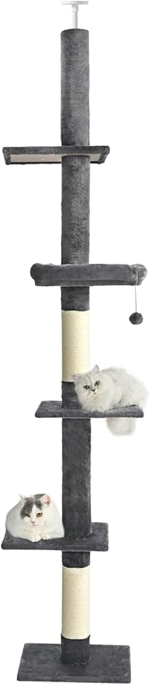 Floor to Ceiling Cat Tree, Cat Tower with Adjustable Height 98-110 Inches, 5 Tiers Tall Cat Tree Floor to Ceiling with Cozy Bed,Platforms, Sisal Scratching Posts for Cats Gray