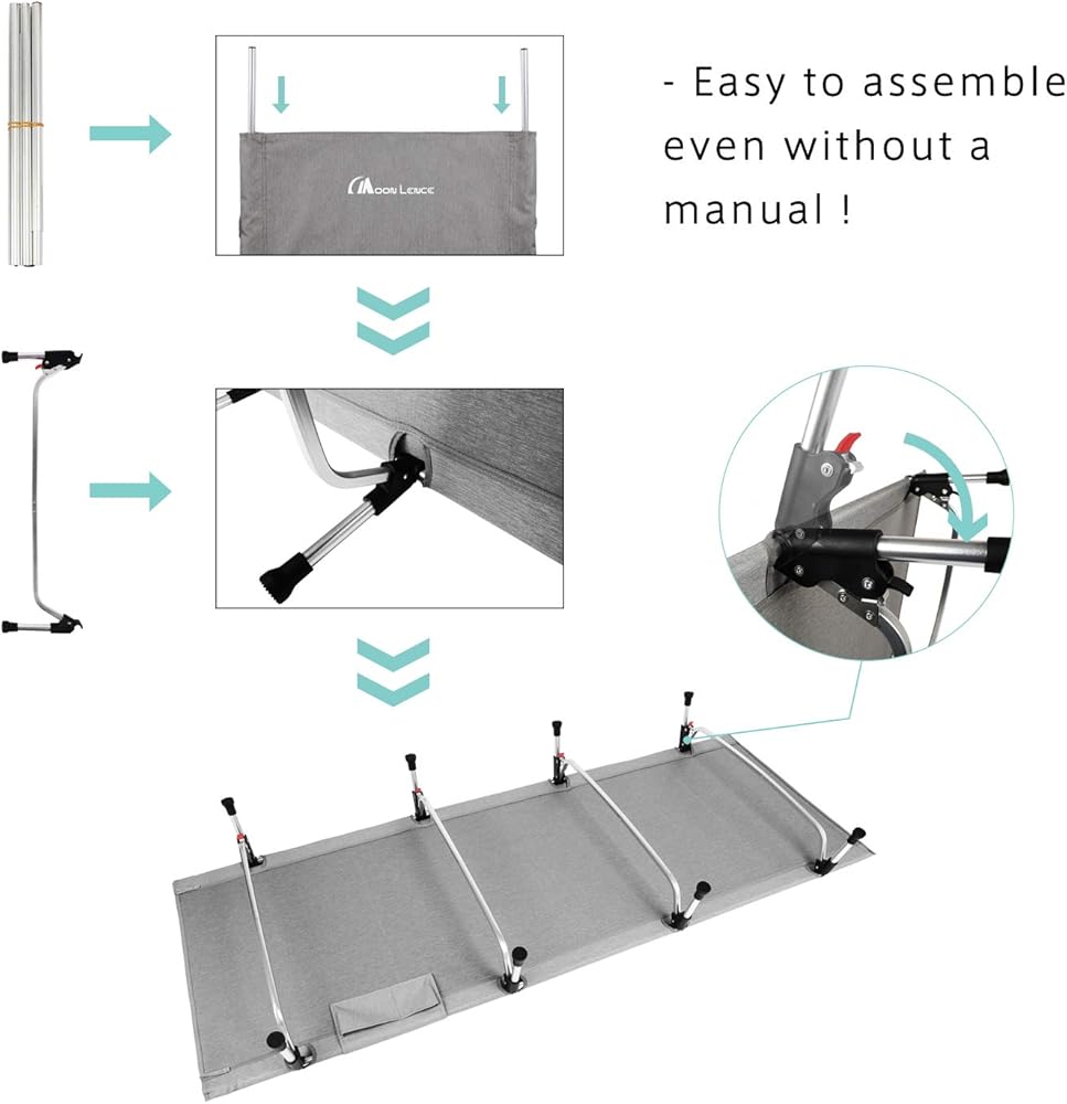 VERSATILITY: MOON LENCE camping cot is comfortable enough to ensure great sleep wherever you are. Portable cot best for outdoor adventures, like overnight camping, hiking, trekking, hunting, beach. Also ideal for indoor bedroom, living room, office, and any places you need to sleep.