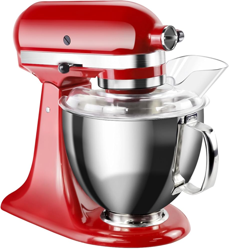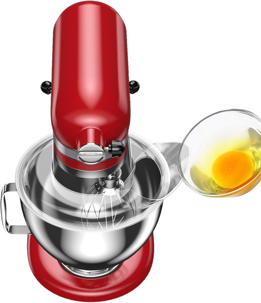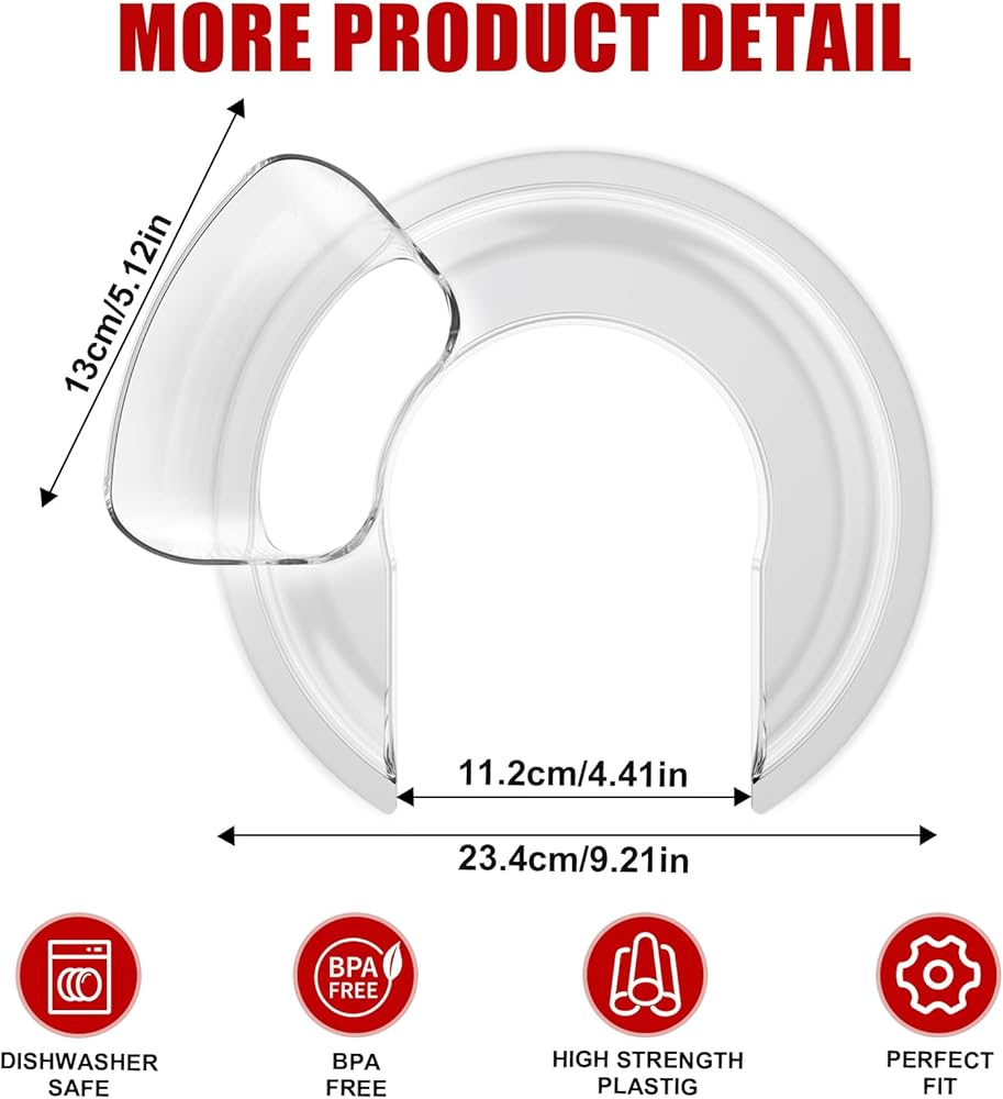 【Pouring Shield for Kitchen Aid】Pouring shield for kitchen stand mixer fits onto your mixer bowl to help you easily add ingredients to enter the center of the mixing bowl during the mixing process, mixing will be more efficient and thorough without scattering to the edges of the bowl without making a mess.It also helps keep light weight ingredients like flour from flying out of the bowl when you're mixing.