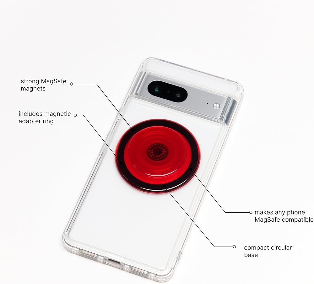 Our phone grip compatible with MagSafe we call a "PopGrip" securely attaches to your MagSafe-compatible case for maximum grip and kickstand capabilities