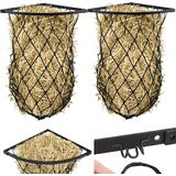 Comprehensive Feed Solution: experience the advantages of the black wall hay feeder package that covers all your equine feeding needs; It features 2 corner hay feeder frames and 2 hay nets for a comprehensive eating experience; This dual feed package ensures reliable, easy installation via included screws