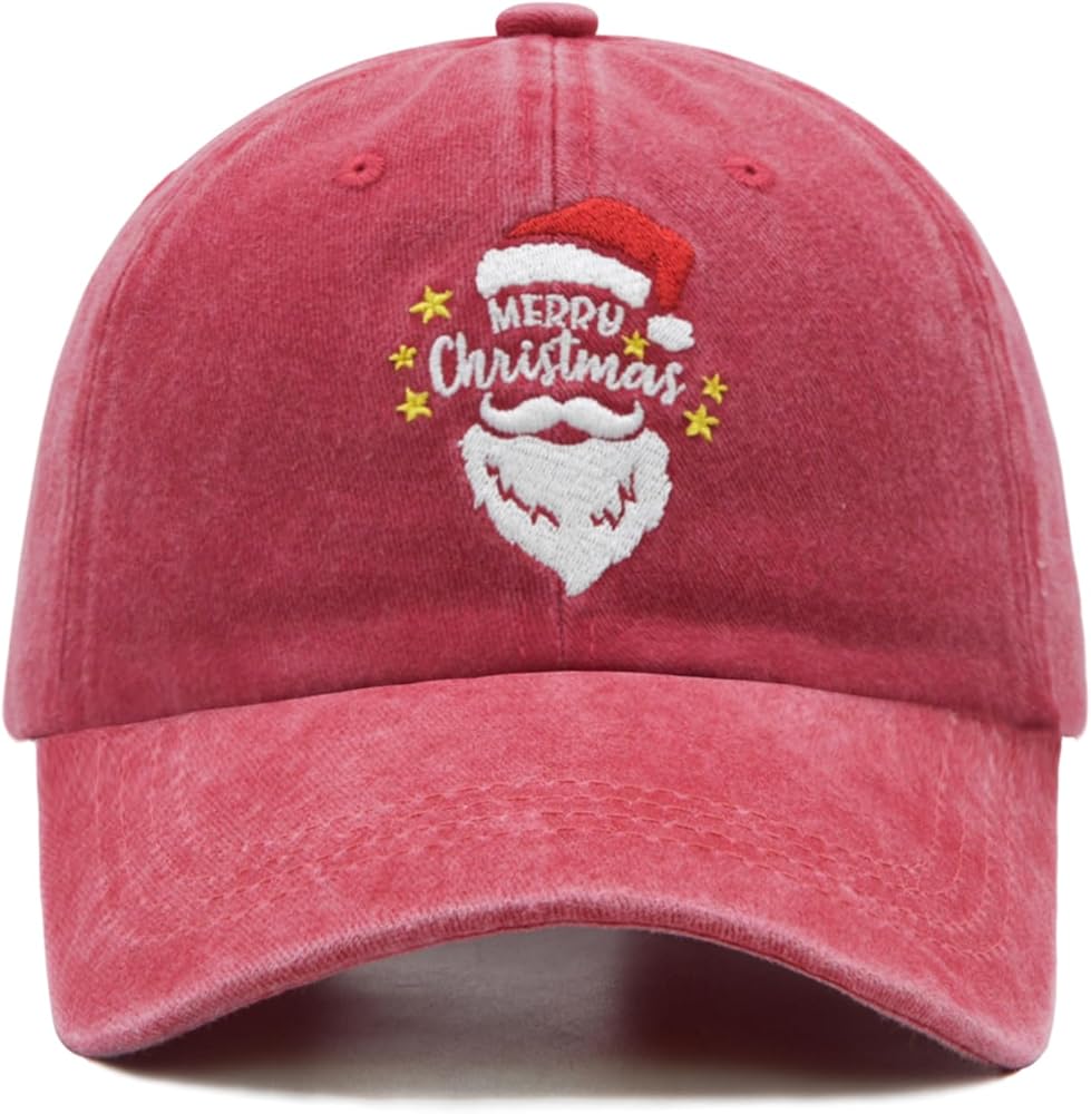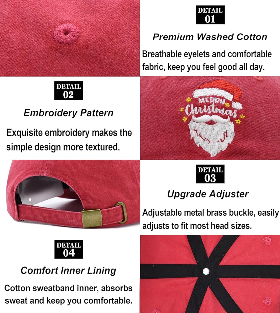 Fits Most Sizes: The Merry Christmas baseball cap designed with adjustable metal buckle, you can freely adjust the size of the Santa cap to make it fit your head perfectly, suit most adult-size heads