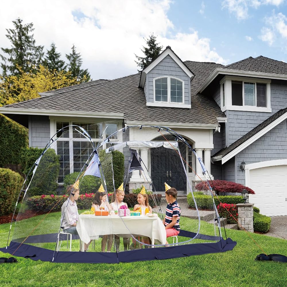 【SPACIOUS FOR 4-6 ADULTS】Our outdoor bubble tent provide a large space that measures 10' x10' x7' H. Enough roomy to place various pieces of furniture so you can give your bubble tent a homely feeling. Large entrance door with double zippers allows you to access from inside and out easily. There are velcros next to the door for easy hanging the lifted curtain, and 4 mesh vents to keep air circulation in hot day.