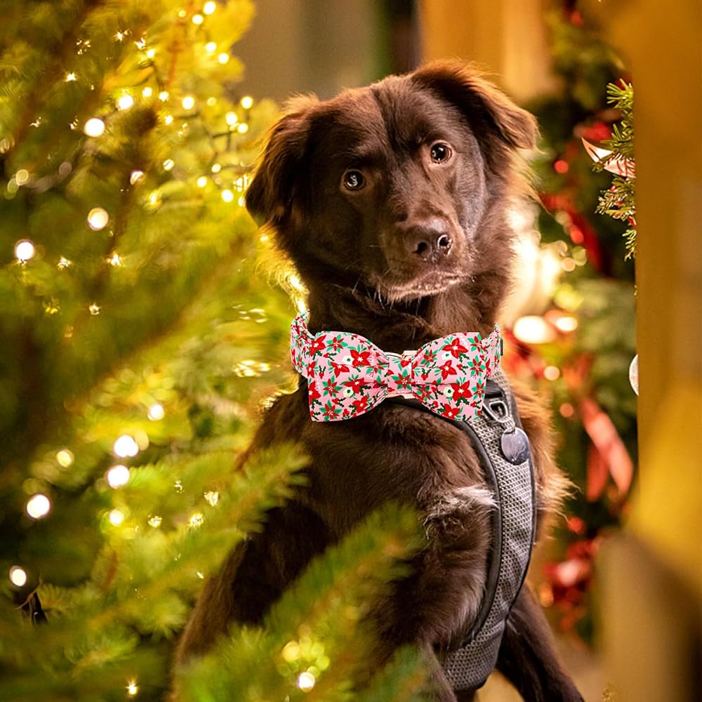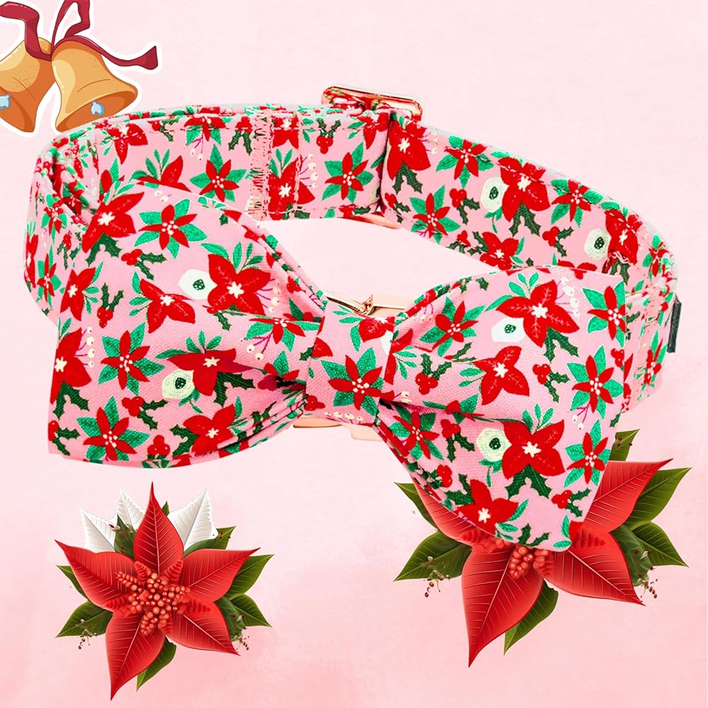 Lionheart glory Dog Bow Collar Christmas Flower Pink Dog Collar for X-Small Dogs, Adjustable Soft Sturdy Girl Collars with Bowtie Puppy Cute Collars