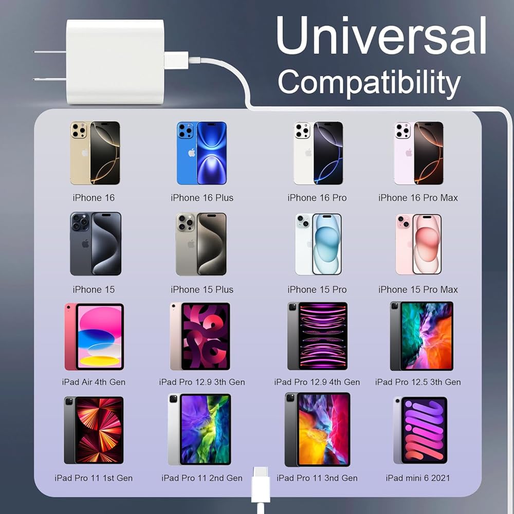 ✔ PD 3.0 USB C Port: 3 Times High-speed Charging: 20W USB-C wall charger can charge iPhone 16 15 Pro Max from 0% to 50% in 30 minutes, 3X faster than the original 5W charger!