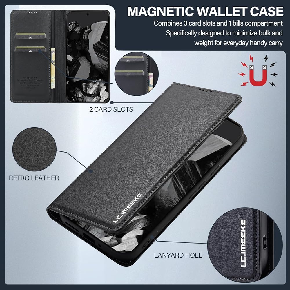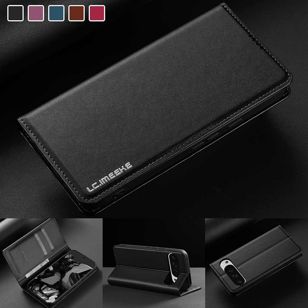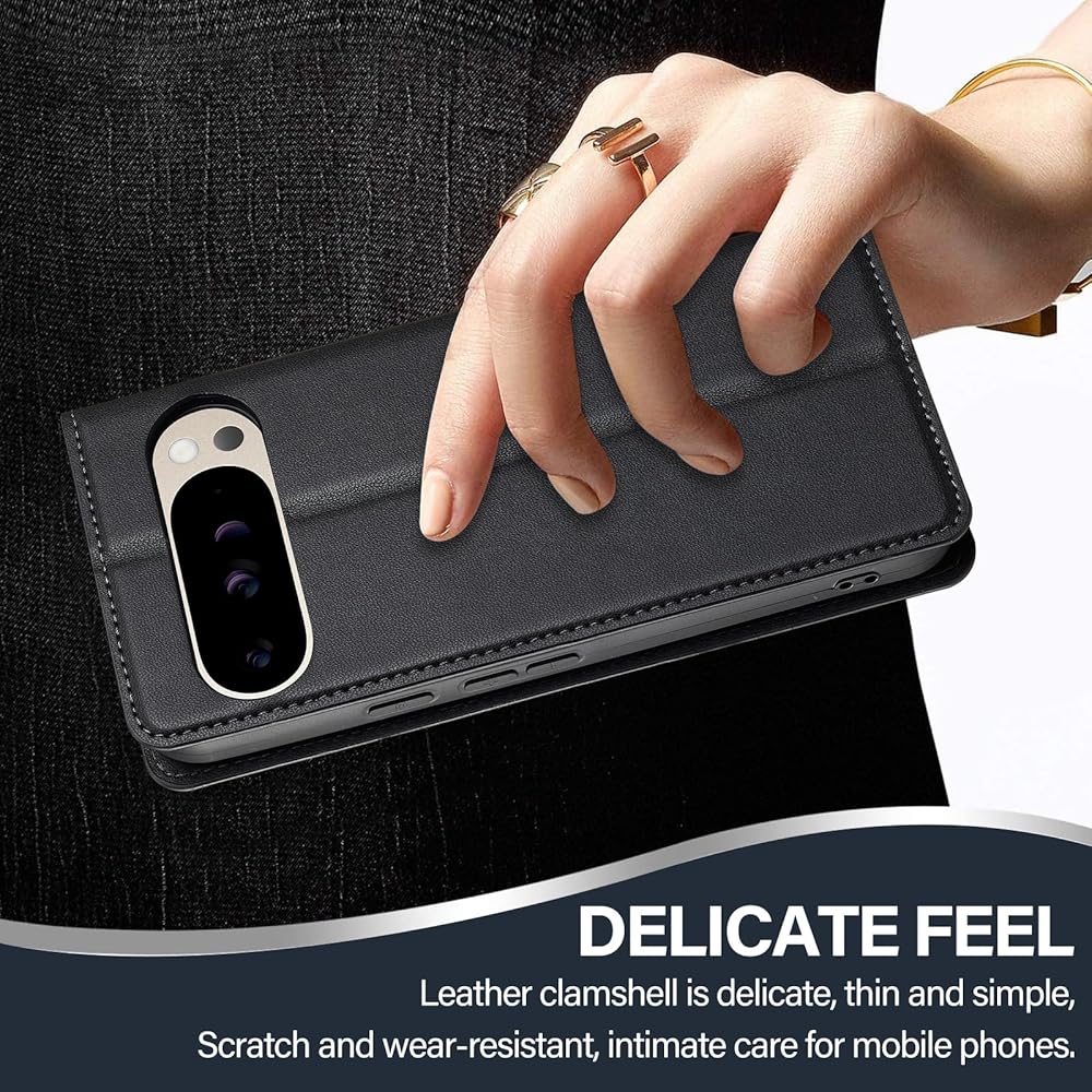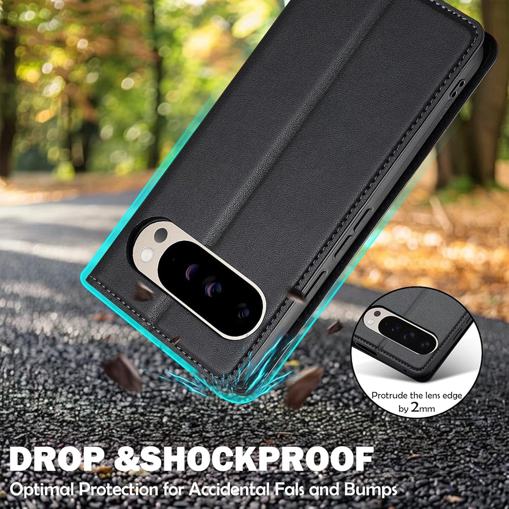 Kowauri Case for Google Pixel 9 Pro XL, PU Leather Wallet Flip Case for Women Men with Card Holder Kickstand Magnetic Closure Shockproof Protective Phone Cover for Google Pixel 9 Pro XL (Black)