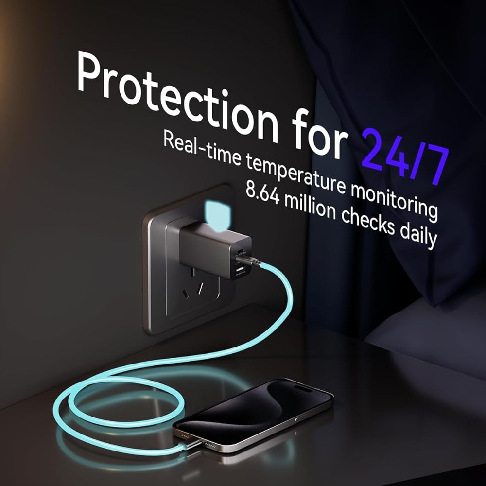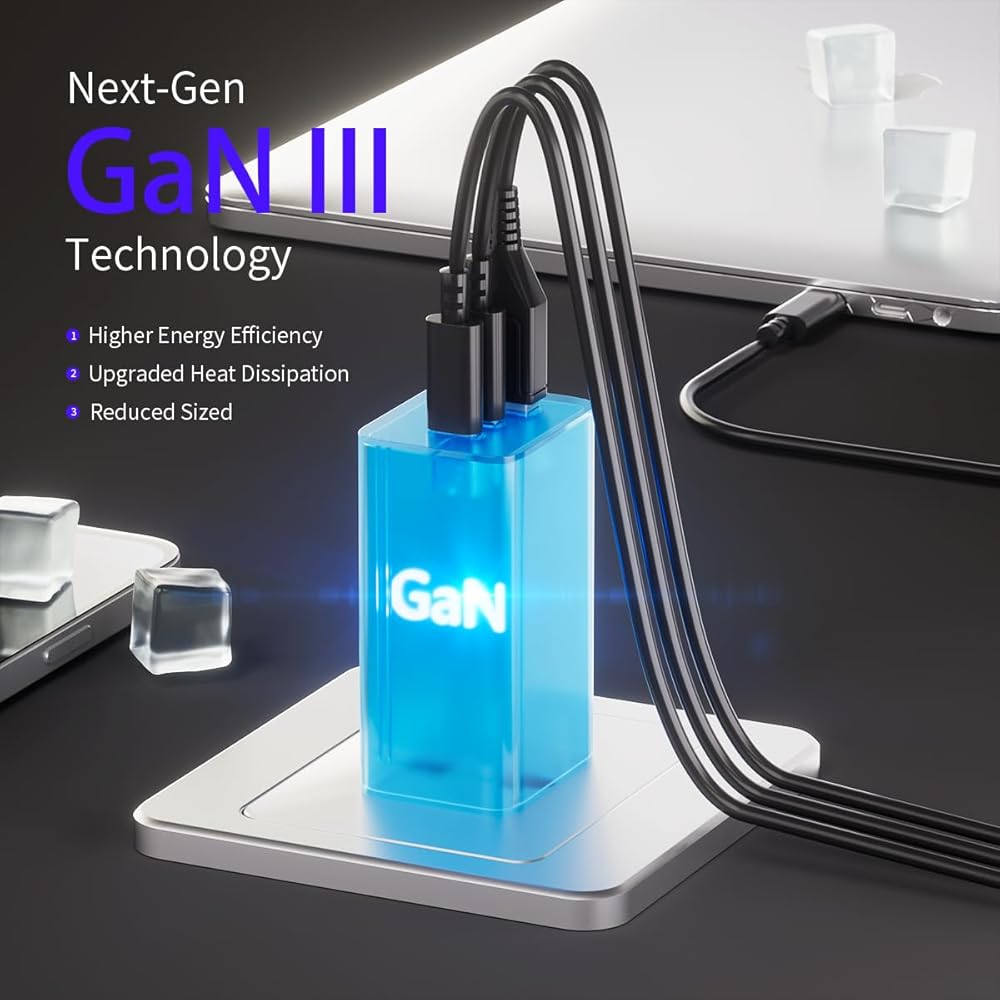 【Advanced GaN III Technology】 Powered by GaN III technology, compared to traditional silicon-based chargers, the charging blocks deliver safe, reliable, and efficient power while maintaining a compact size and minimizing heat