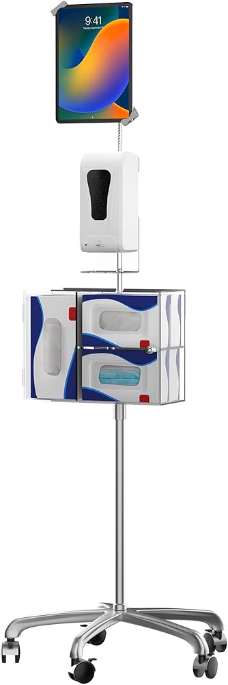 Turn any medical space into a savvy, digital workstation with CTA Digital's Heavy-Duty Security Medical Mobile Gooseneck Floor Stand. This ultra-durable, rolling floor stand gives full access to your tablet at virtually any angle, and features a telescoping, height-adjustment pole and flexible gooseneck with plenty of space to neatly stow cables. The slide-open tablet holder tilts from side to side and rotates 360-degrees to accommodate either portrait or landscape orientations. Secure your tablet with a powerful lock and key mechanism. Five heavy-duty, hospital-use wheels provide smooth navigation. Reliable locking casters will stay in place until you're ready to move again. Exceptional mobility, adjustability, along with its crisp look makes this mobile floor stand an excellent addition to any medical facility, doctor's office, or hospital. * CTA Digital's security products are designed to protect your device from theft. Products are made with high-quality materials, like reinforced heavy aluminum slots, steel cables, and secure lock-and-key systems. Where CTA Digital makes every effort to protect against destruction of or loss of property, we cannot guarantee, and cannot be responsible for any event that leads to the damage or theft of a device.