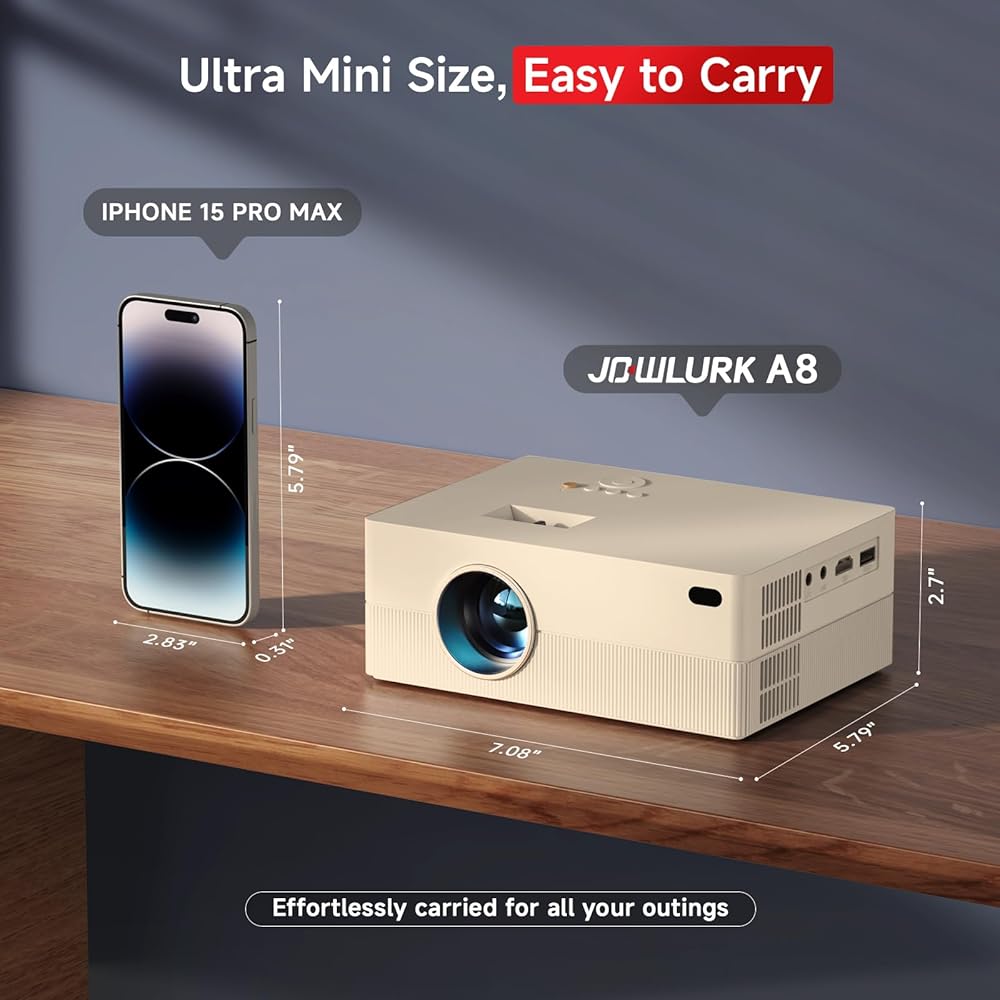 [Electric Focus] JOWLURK Mini Projector with Wifi and Bluetooth,1080P HD Portable Projector,15000L Movie Projector for Home Bedroom, Compatible with Android/iOS/Windows/TV Stick/HDMI/USB (Champagne)