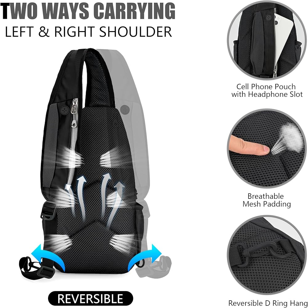 Hidden Earphone Hole: The sling backpack has a hidden earphone hole on the shoulder strap, providing easy access to your earphones and charge with power bank, you can enjoy music anytime and anywhere.