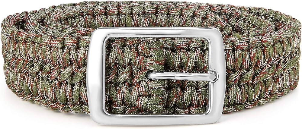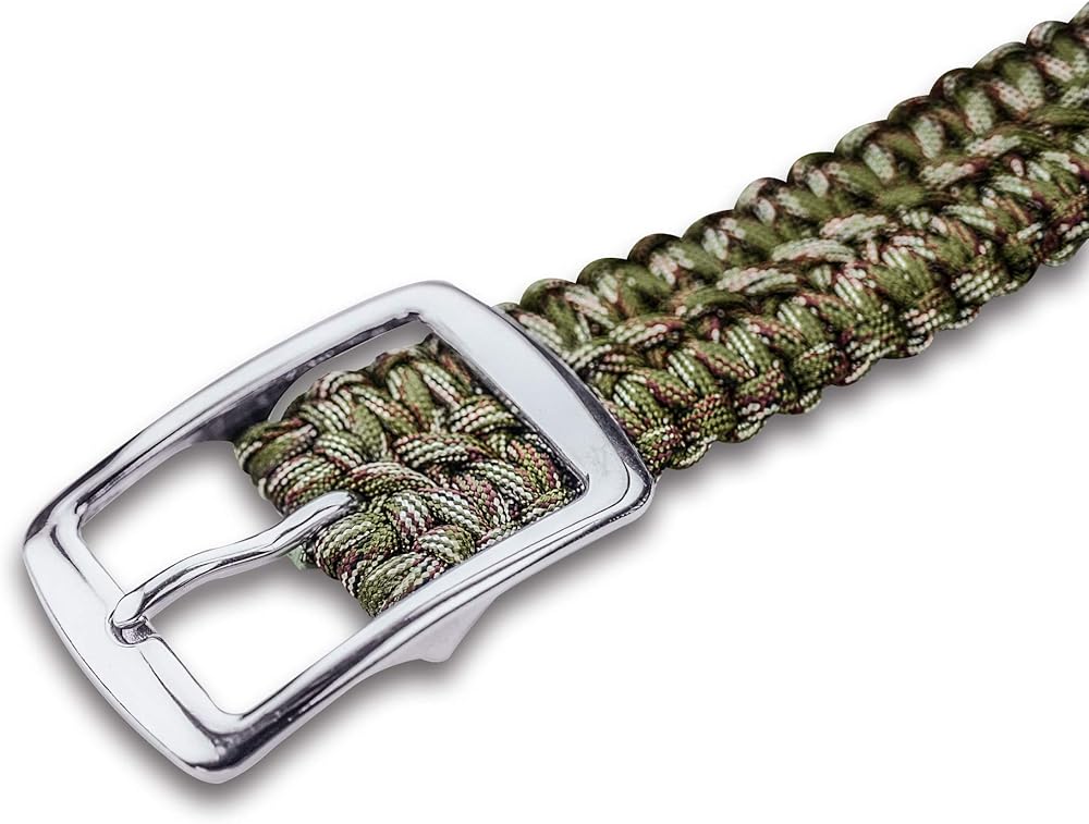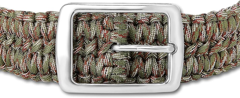 Let any outdoor adventures begin and be ready with your Divoti Paracord Belt with Surgical Stainless-Steel Belt Buckle. The one and only belt you will need for your outdoor and daily adventures. STEEL HAWK Paracord Belts are handwoven from military-grade Milspec 550 Tactical Paracord rope (made of 100% genuine 7-strand 550LB nylon parachute cord). These parachute cords hold a breaking load of 550lbs and a working load of 220lbs. These cord lines is 5/32" diameter in overall thickness and can stretch up to 10% elongation underweight in lab tests.