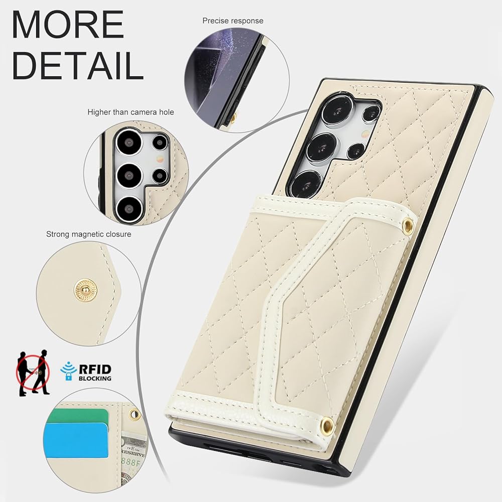【Kickstand Function】: Stand Feature will bring you more convenience for movie-watching with multi-viewing angles, hanging out with friends on Face Time, Galaxy S24 Ultra 5G wallet Case has exact cutouts to keep features fully accessible.