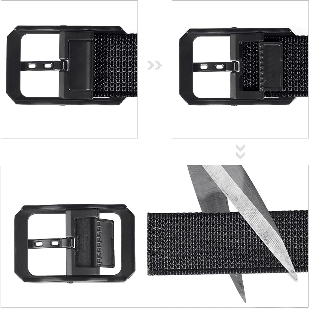 Material: Tactical belt for men is woven of 1.5" high quality nylon, which is comfortable, flexible and tear resistance. Its buckle is made of zinc alloy, which is not easy to oxidize.
