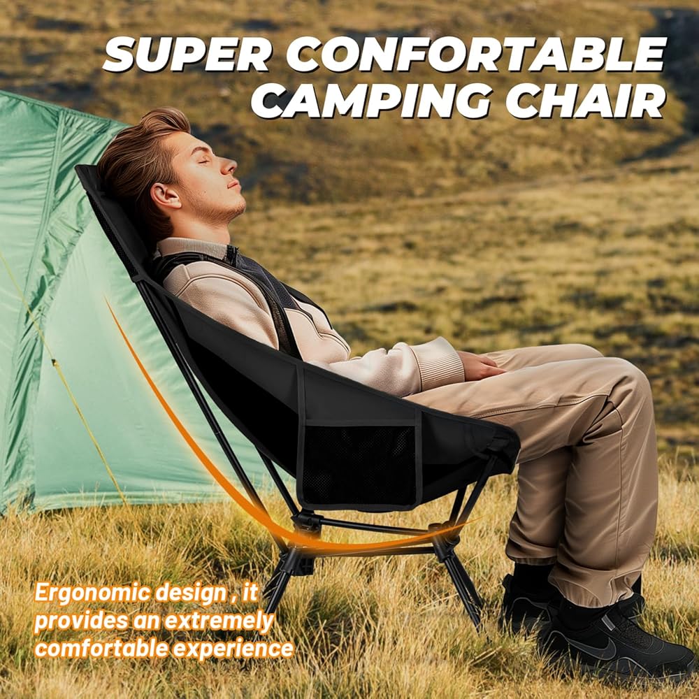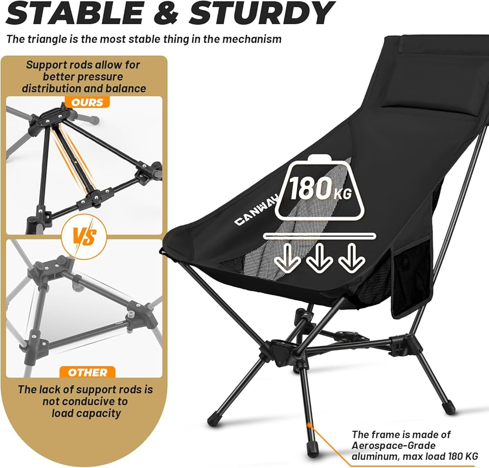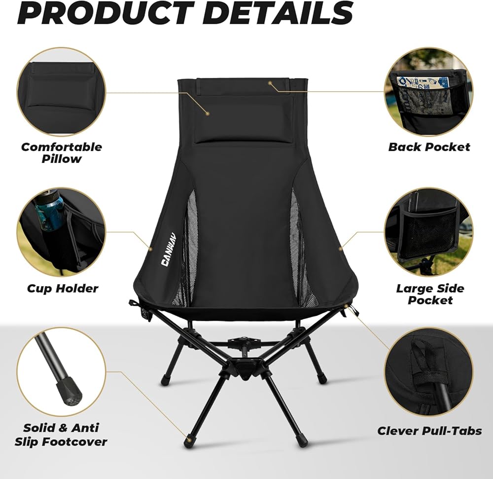 CANWAY Camping Chairs - High Back Folding Chair with Headrest for Adults, Lightweight Camping Chair for Outdoor, Hiking, Travel, Picnic, Lawn Concerts (Black)