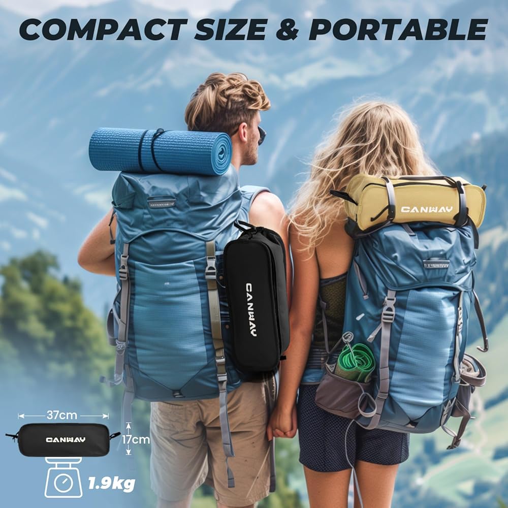 Heavy Duty Camping Chair: CANWAY Backpacking Chairs are made of durable high-tech aluminum alloy frames that are corrosion-resistant and oxidation-resistant. The high-performance 900D polyester has durability and water resistance and lasts a long time.