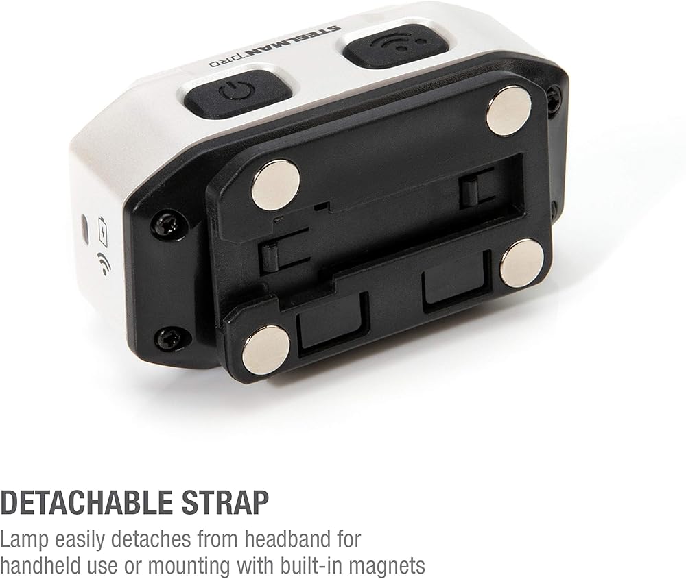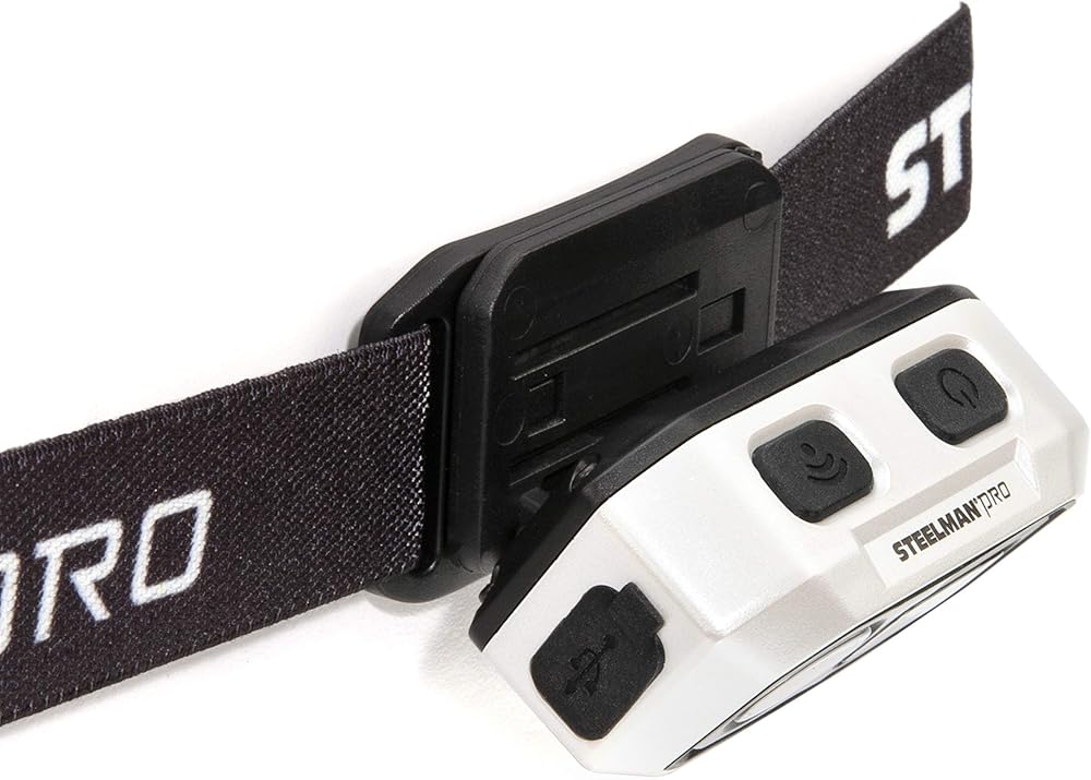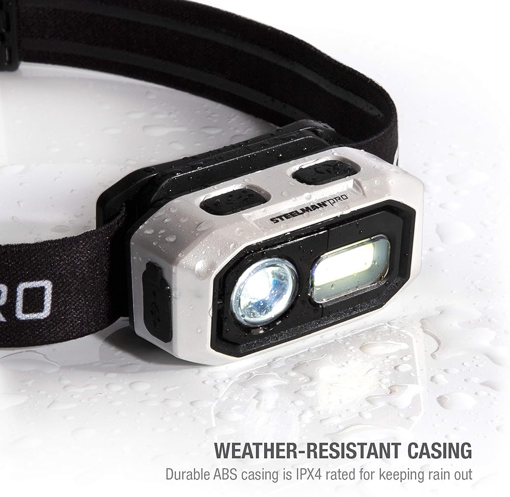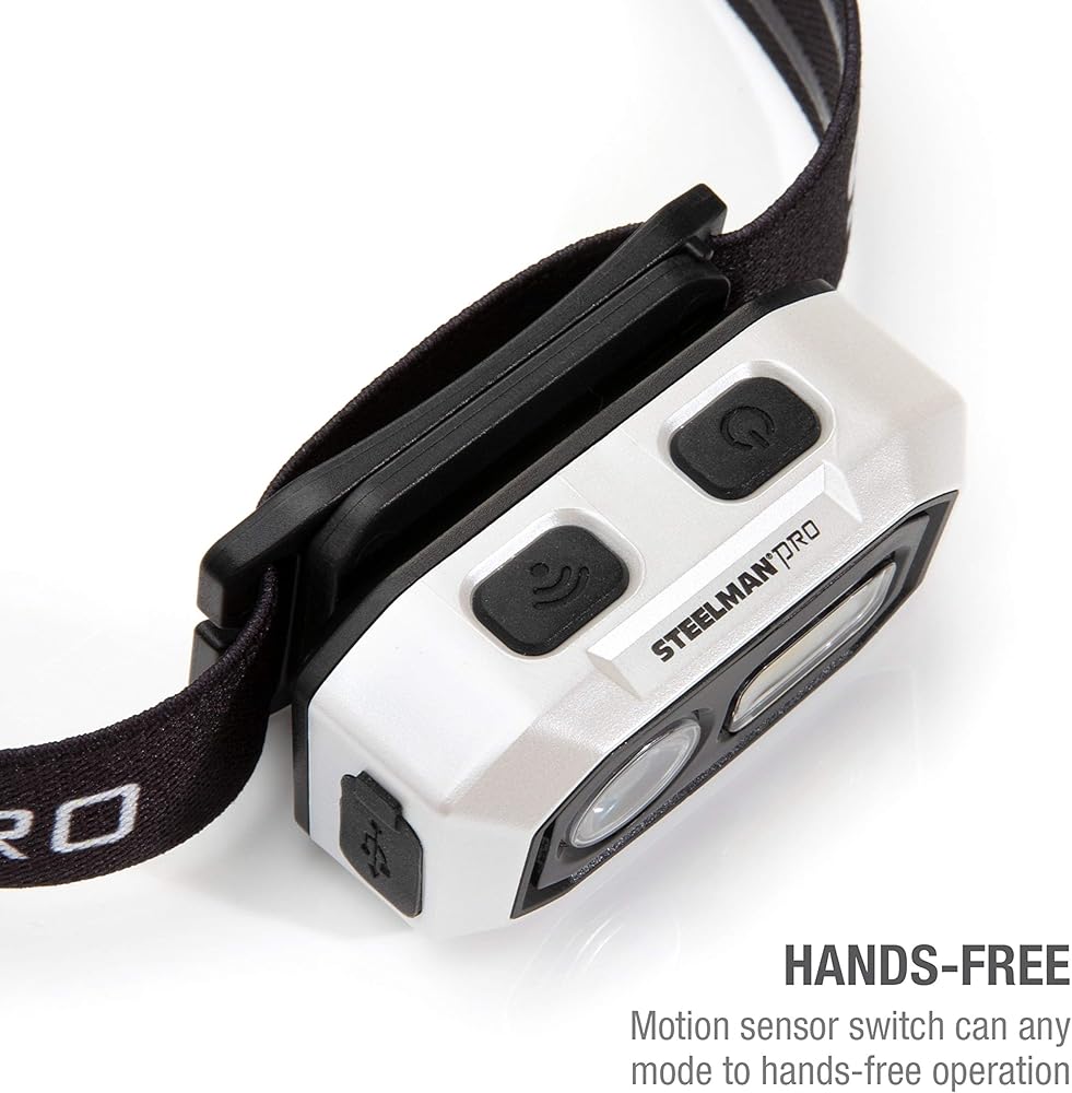 Steelman Pro 300 Lumen Hands-Free Motion-Activated LED Rechargeable Headlamp for Workshop or Outdoors, Spotlight and Area Light Modes, Removable Light, Fully Adjustable Headband