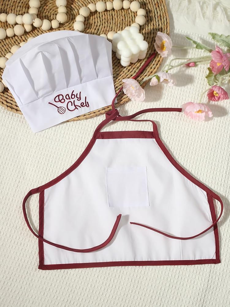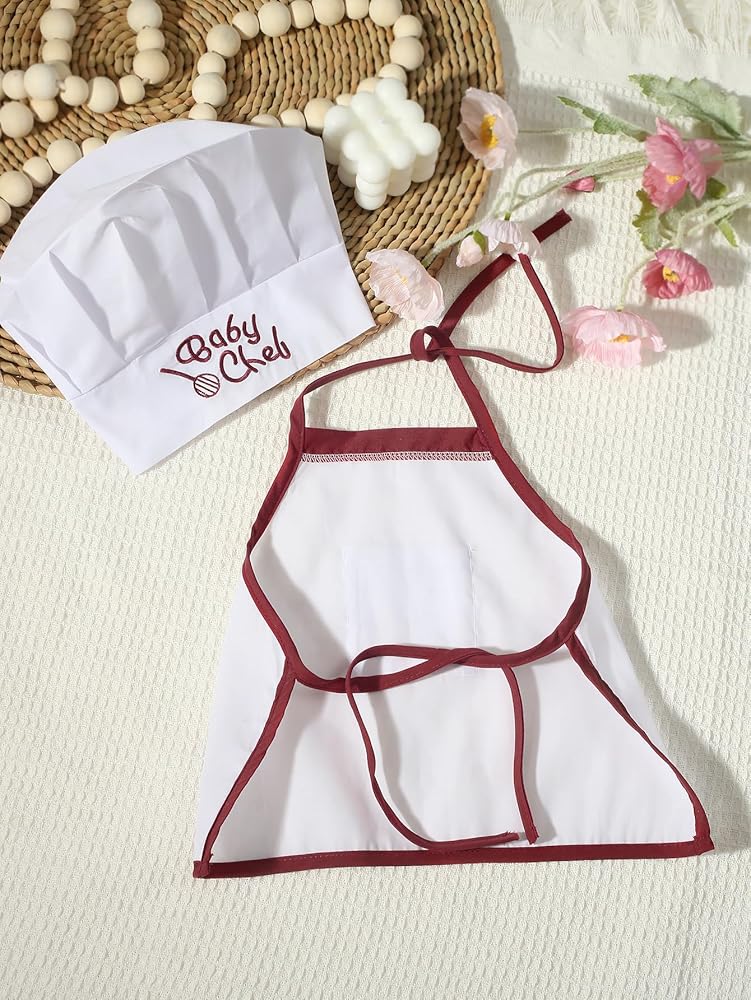 Ylsteed Newborn Photography Outfits Girl Boy Chef Outfits Infant Baby Photo Shoot Chef Costume Newborn Baby Photography Props Baby Chef Hat Apron Set Newborn Photography Outfits Boy - (Edge Red)