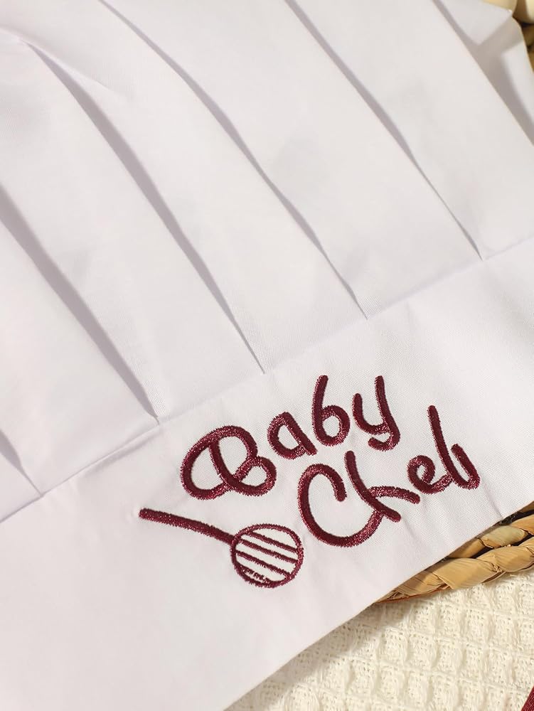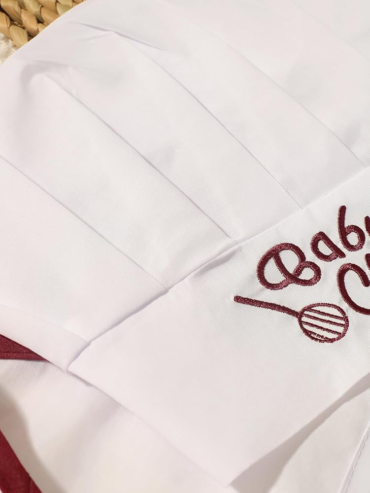 【Infant Baby Chef Costume】: The hat and apron are very cute and beautiful, there is a cute bread pattern decoration on the hat, and the white chef hat and apron make your baby look like a real chef, perfectly suited for Your newborn's Photoshoot Prop