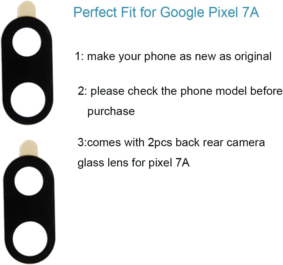 [ 2 Pieces OEM Camera Glass Lens Included ] 2 Pieces brand new camera glass lens included in the package for Google Pixel 7A . To ensure it's the correct camera glass lens replacement for your phone , please check your phone model before making the purchase.