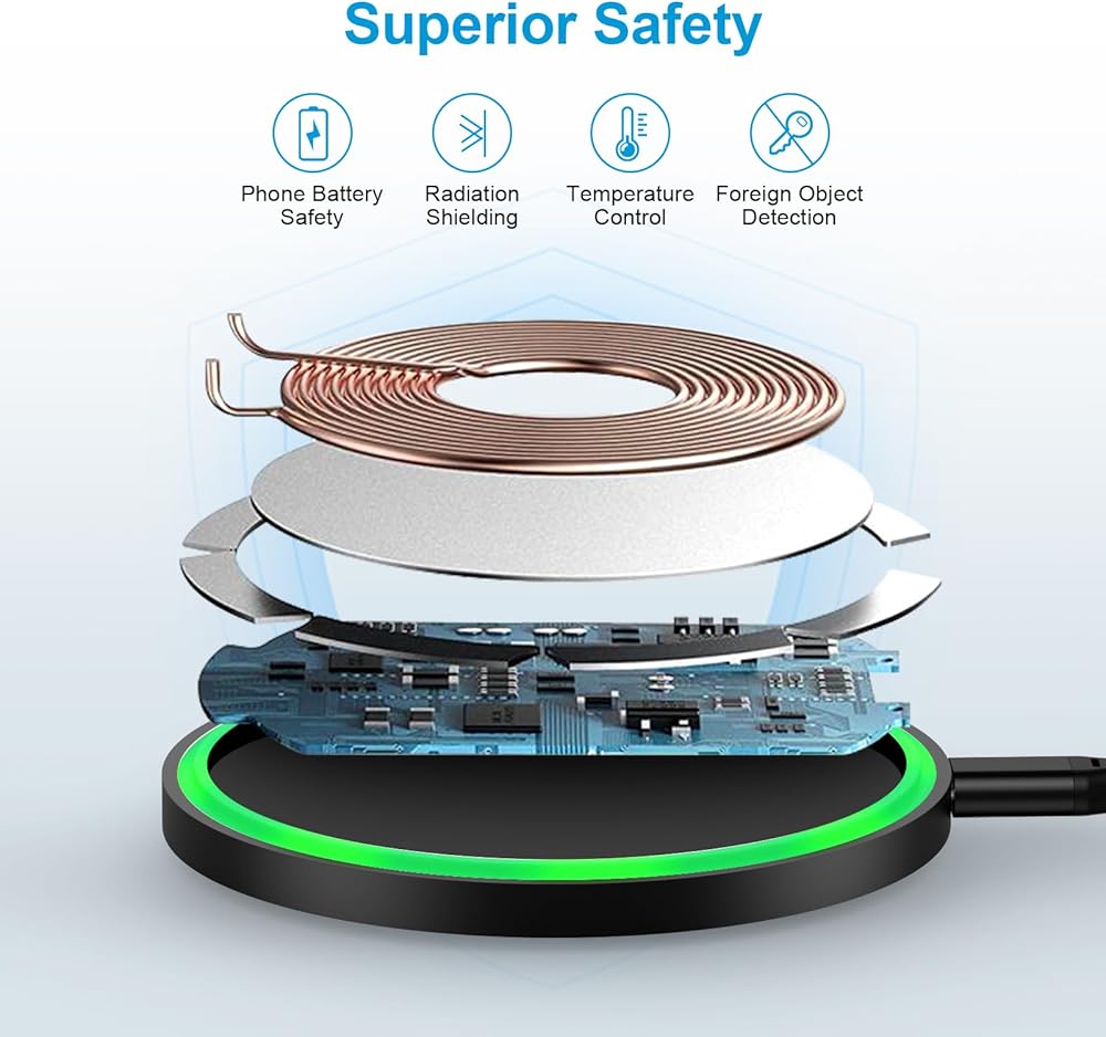 JoHouer 15W Samsung Galaxy S24 Wireless Charger Pad Station with with QC 3.0 Adapter & 3ft usb type c cable