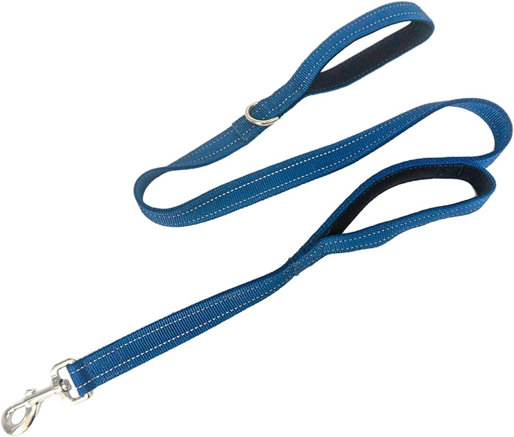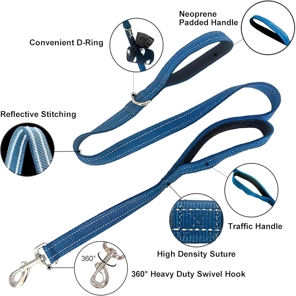Heavy Duty 2 Padded Handle Dog Walking and Training Standard Leashes for Traffic Control,with Enlarged Tangle Free Buckle,D-Ring,Double-Sided Reflective Stitching,Double Layer Nylon,Blue 4Ft
