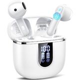 Dual LED Display and 40Hrs Playtime: Wireless headphones use the unique Dual LED display technology to accurately display the remaining power of earbuds and charging case. Bluetooth earphones playtime lasts for over 6-8 hours from single charge and total 40 hours with charging case.