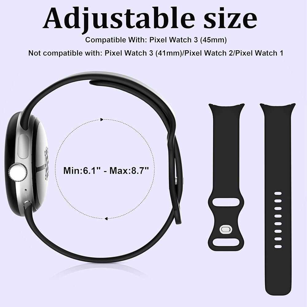 【Perfect Fit】Silicone straps compatible with Google Pixel Watch 3 45mm [Note:Please select the model number that corresponds to your watch when purchasing].